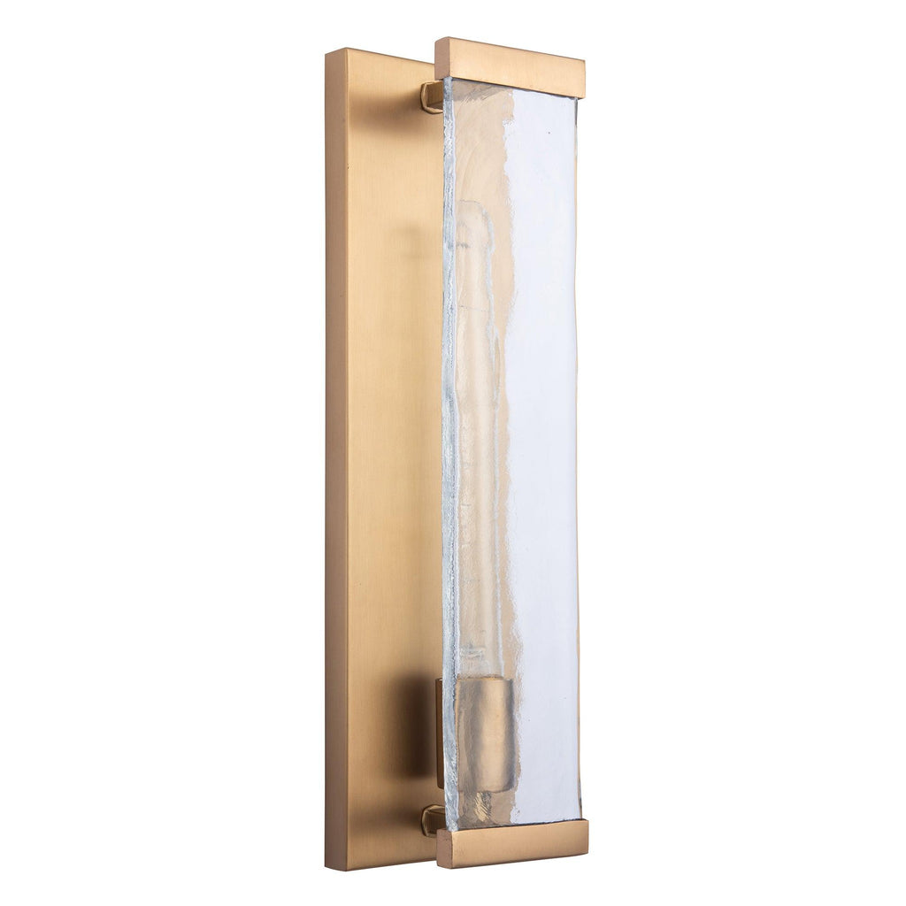 A 1 light gold wall sconce with decorative glass is a stunning lighting fixture that combines the elegance of gold metal with the beauty of decorative glass. The sconce features a single light source enclosed in a gold-colored metal frame adorned with intricately designed decorative glass panels. The decorative glass can create a beautiful and unique play of light and shadows when the sconce is illuminated. The one light gold wall sconce with decorative glass is a perfect choice for adding a touch of luxury and sophistication to any room in the house, from the living room to the dining room or bedroom.