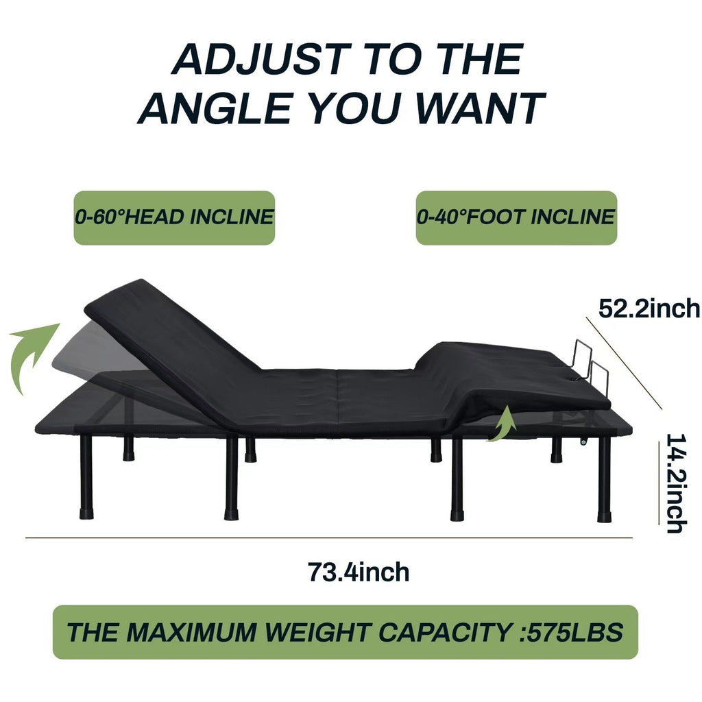 Adjustable Bed Base-Motorized Head and Foot Incline-Quick and Easy Assembly