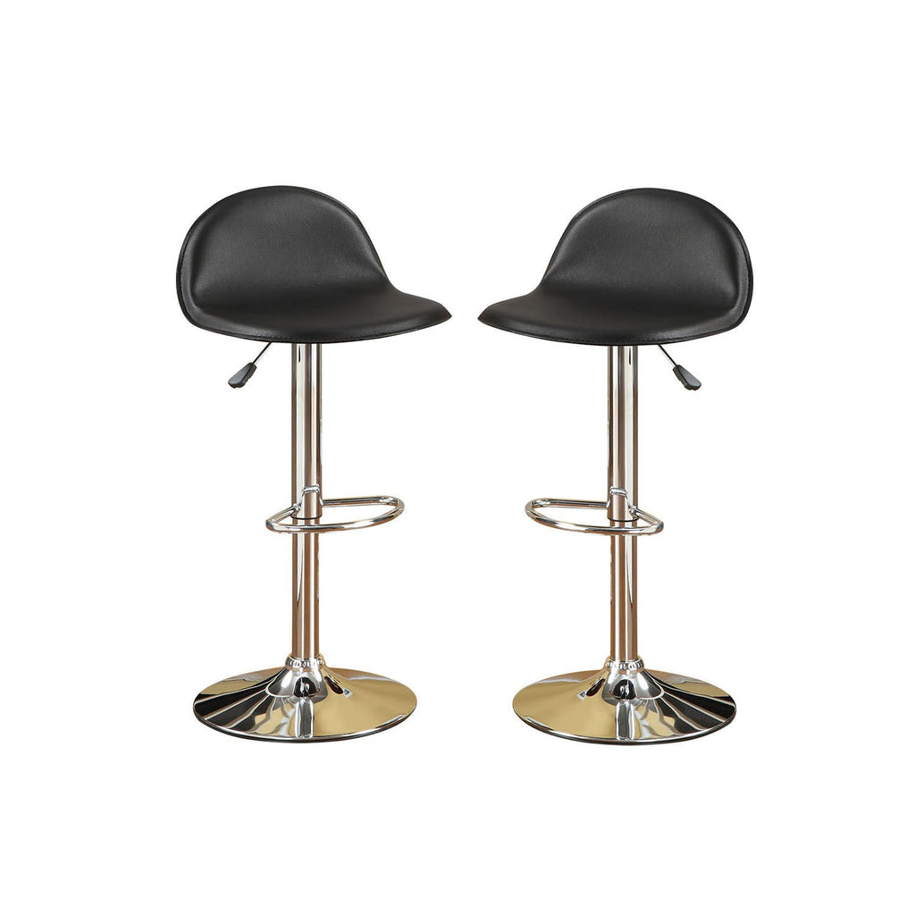 The bar stool is upholstered with black synthetic leather, its adjustable base and chrome footrest provide greater comfort when used either to enjoy a refreshing drink or simply to take a few minutes of rest. Give your home a new look with this bar stool and its contemporary design that will fascinate whoever uses it.