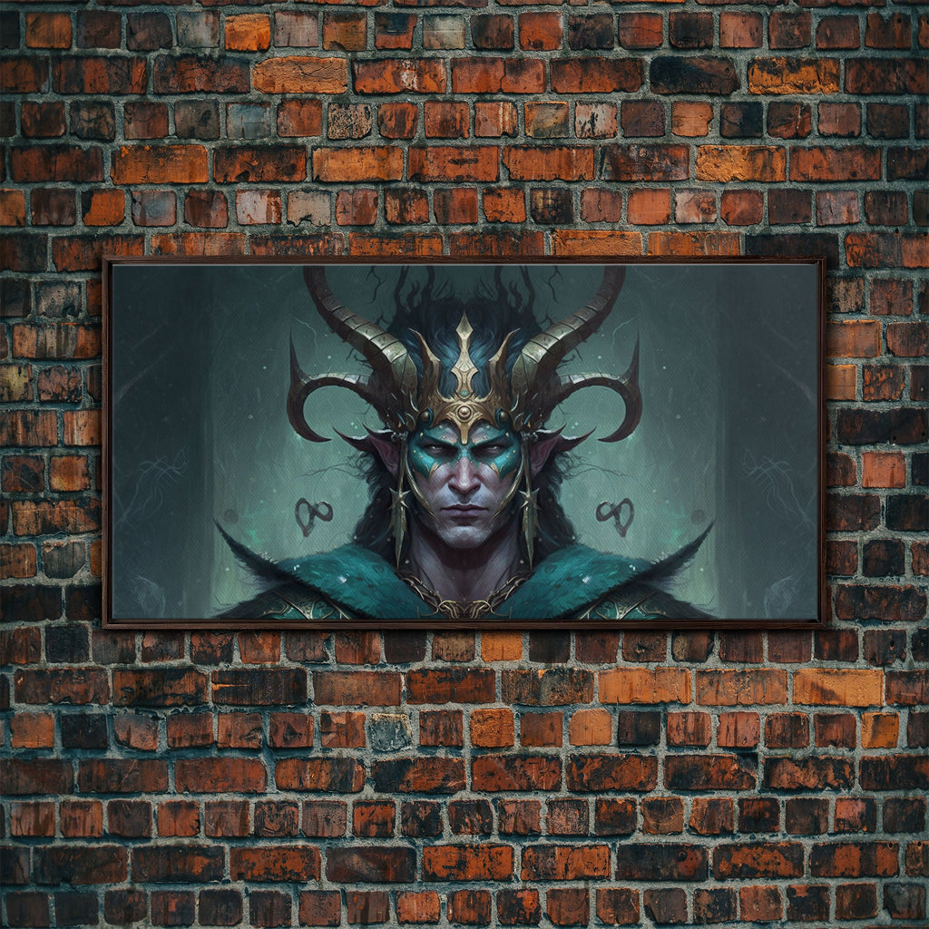 Aesthetic Loki the Trickster God, Norse Mythology, Framed Canvas Print, Extra Large Art, Fantasy Decor, Pastel Aesthetic Art