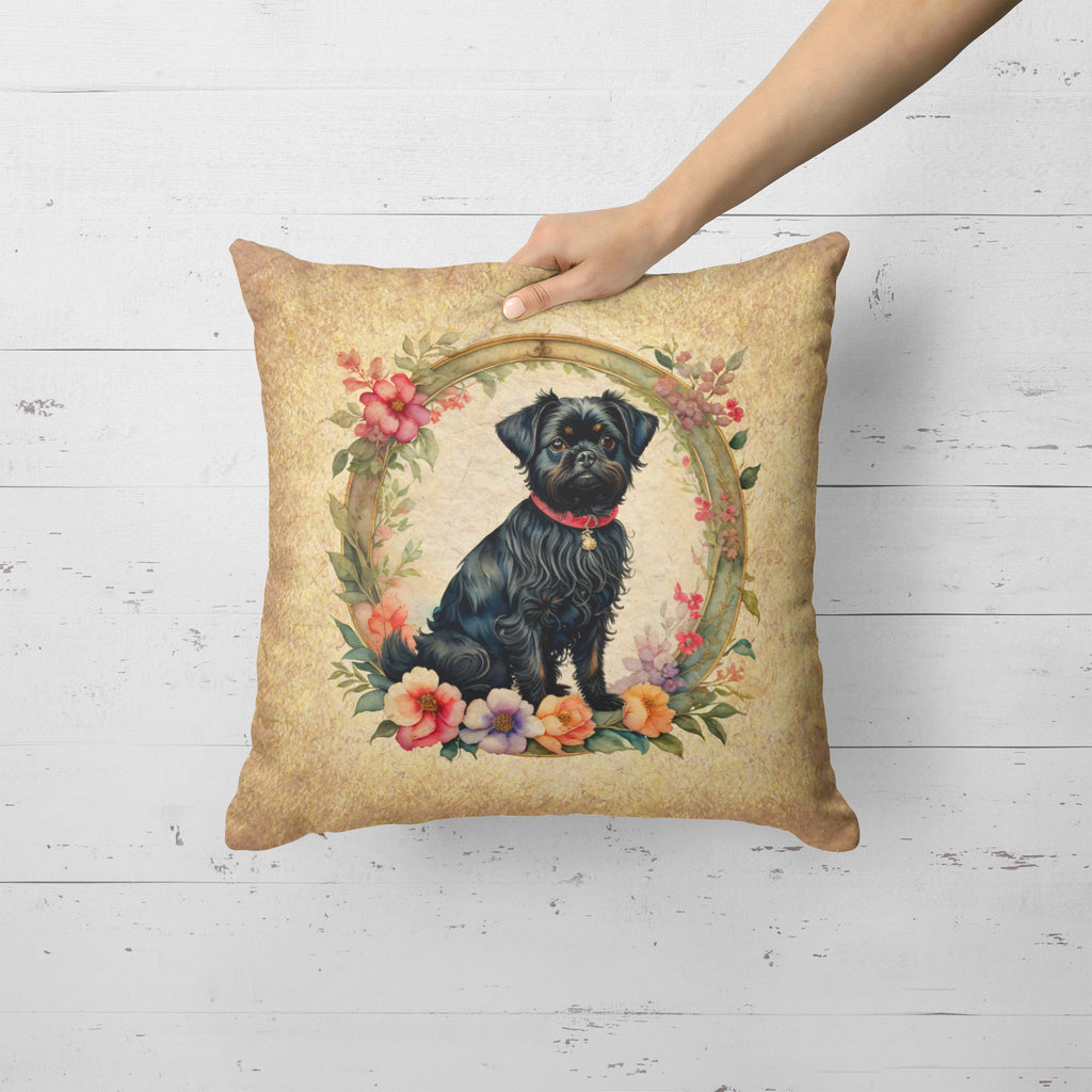 Affenpinscher and Flowers Fabric Decorative Pillow