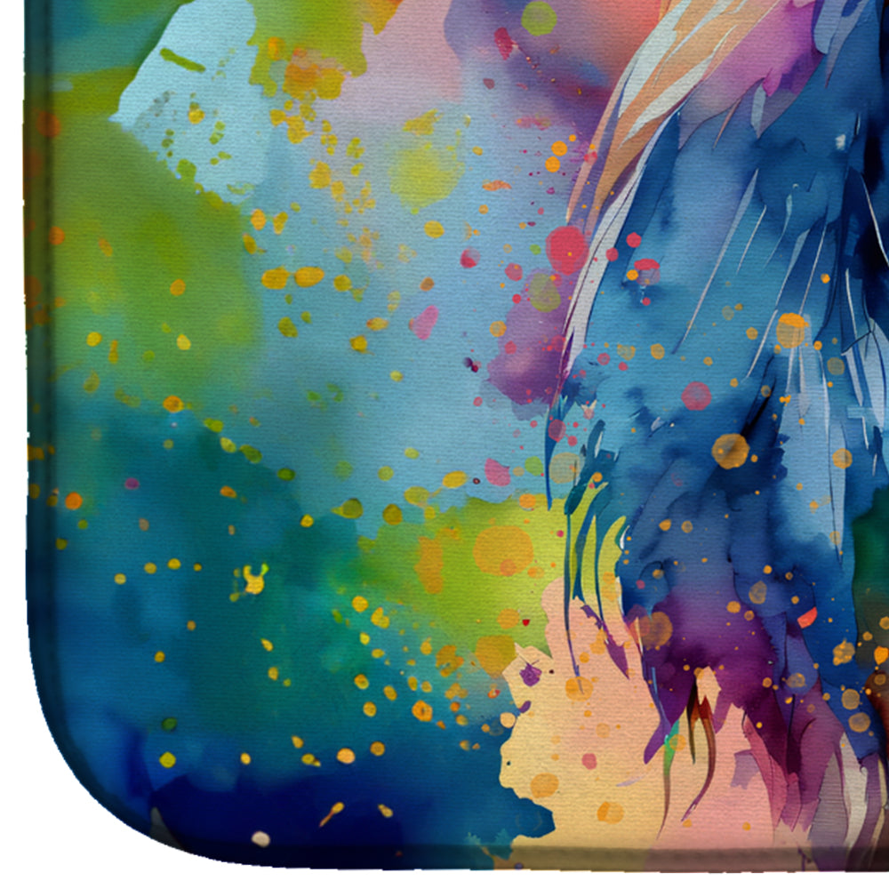 Dish Drying Mat featuring breed specific Afghan Hound artwork. Say goodbye to messy countertops and soggy dish towels with our innovative dish drying mat. Our high-quality dish drying pad is designed to keep your countertops dry while offering a stylish and efficient solution. Whether you're air drying dishes, glasses, stemware, silverware, pots, pans, bottles, or even fruits and vegetables, our dish mat is the perfect choice. The 14 inches x 22 inches size fits most counters and dish drying racks, and the non-slip design ensures stability. Made with water-absorbent polyester and a polyurethane foam insert, our dish drying mat is not only functional but also durable. It's machine washable and printed in the USA for long-lasting use. The beautiful artwork adds flair to your kitchen decor, making it a perfect housewarming gift or present for any occasion. Upgrade your kitchen experience with our absorbent and versatile dish drying mat.