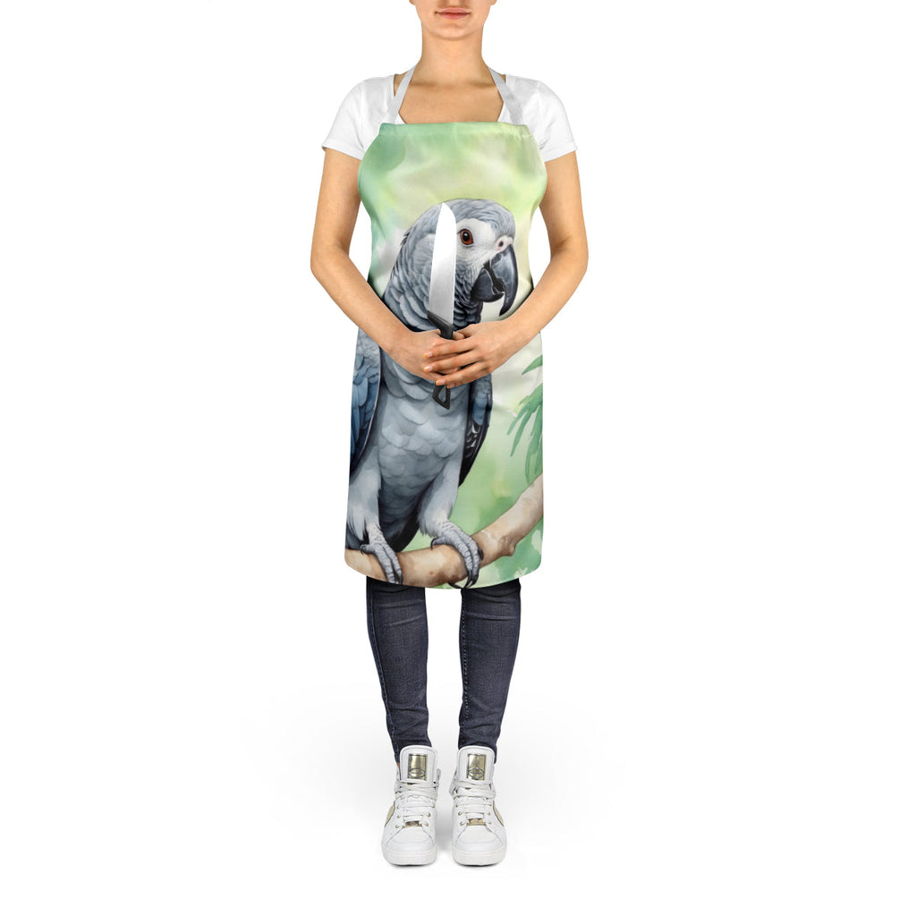Apron featuring breed specific African Grey Parrot artwork. Elevate your cooking, baking, and grilling experiences with our versatile Kitchen or BBQ Apron. This Bib Style apron isn't just limited to culinary activities - it also serves as an excellent baking apron, artist apron, server apron, gardening apron, or even a dog grooming apron. The apron showcases vibrant full-color artwork contributed by one of our talented artists, bringing a dash of style to your daily tasks. With dimensions of approximately 27"W x 30"H, it provides ample coverage to protect your clothing from spills and splashes. Our apron is meticulously crafted from 100% Ultra Spun Polyester, known for its durability and lightweight nature. The apron comes with white tie straps, ensuring a comfortable and adjustable fit for all. It's a perfect choice for kitchen apron enthusiasts, whether you are a woman or a man. Designed for easy maintenance, this apron is fully machine washable. The quick-drying polyester material actively reduces staining, keeping your apron looking fresh and new for longer. Our beautifully designed apron isn't just a functional kitchen accessory - it's a fashion statement in the culinary world!