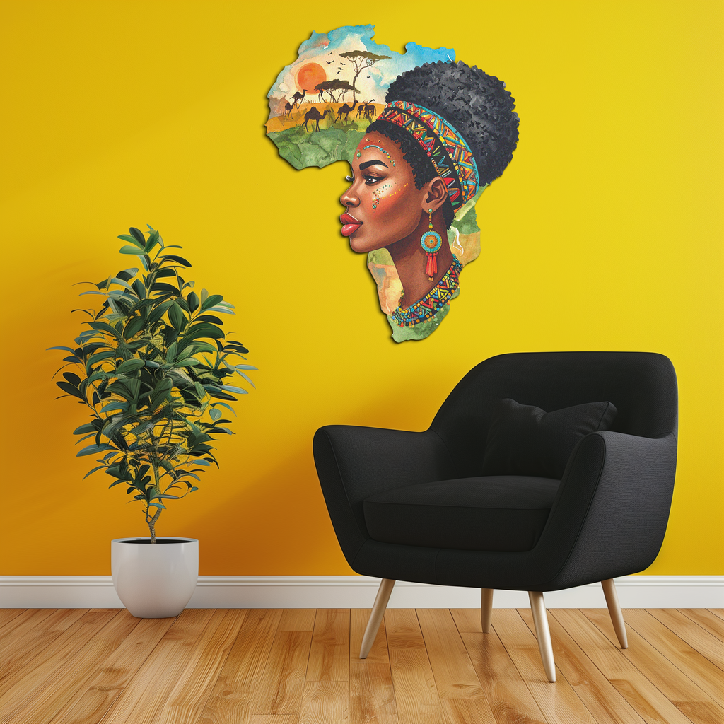 This African Woman in Map Metal Wall Art is more than a visual — it’s a cultural statement. Featuring a stunning portrait of a proud African woman blended with the continent’s outline, this piece captures strength, tradition, and identity in rich UV-printed detail.