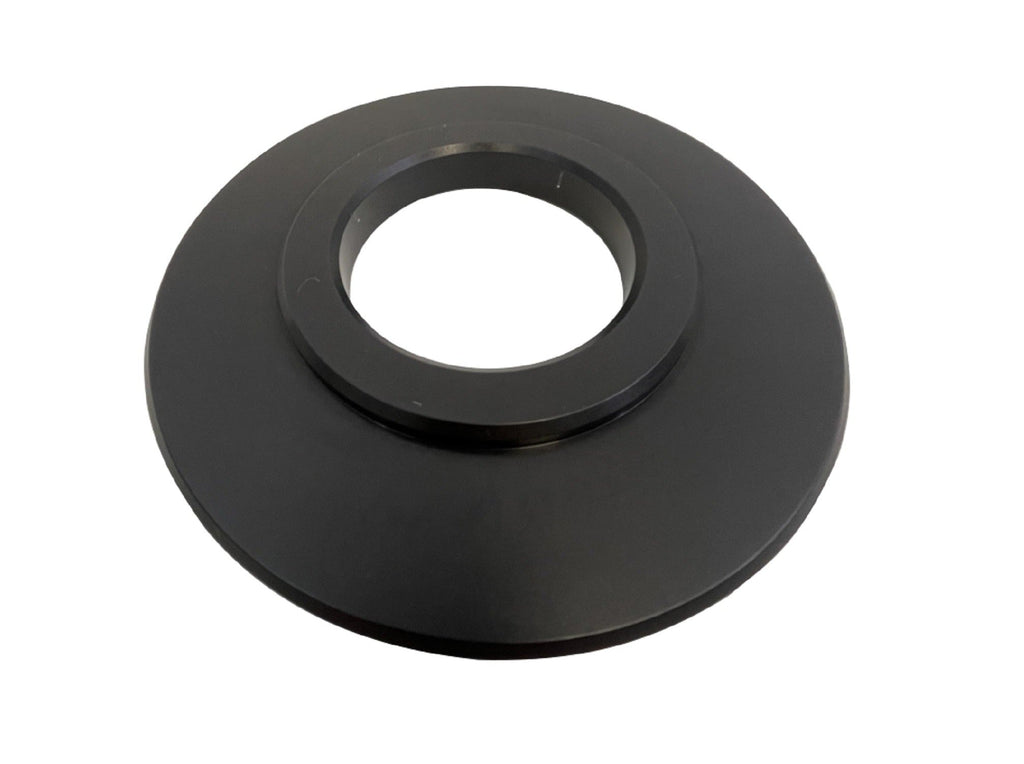 This adapter allows for the stock spare tire hanger to fit snugly on the larger bore of aftermarket wheels. This means aftermarket wheels can now safely be mounted in the spare tire location under the bed. Additionally, the flange of this adapter covers the wheel surface that mates with the vehicle hub, providing protection from rocks and debris. This adapter will work for aftermarket wheels with a bore diameter of 106.1mm to 108mm. Made from billet 6061-T6 aluminum and anodized black.