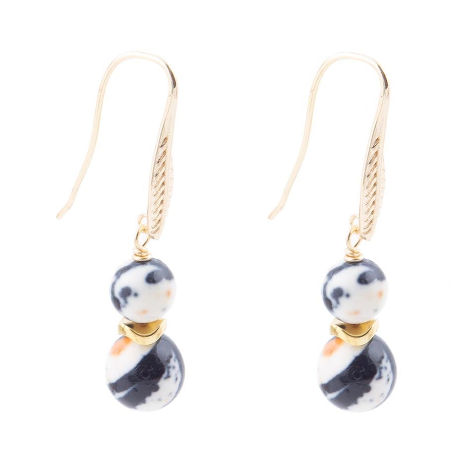 Experience the exquisite beauty of these hand-crafted Jasper Agate Neutrals Golden Brass Drop Earrings, featuring fish hook closures, intricate leaf details, and stunning agate stones in white, black, and brown. Weighing a total of 5.8g, these earrings are 2 inches in length and .40 inches at it's widest point, making them the perfect statement piece for any occasion. Elevate your jewelry collection with these uniquely designed, one-of-a-kind earrings, meticulously crafted and finished by hand.