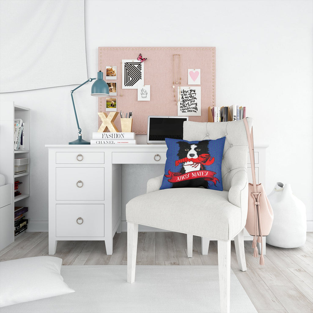 Ahoy Matey Nautical Border Collie Throw Pillow - 14x14 Decorative Pillow – Art for Your Home & Patio VHA3011PW1414