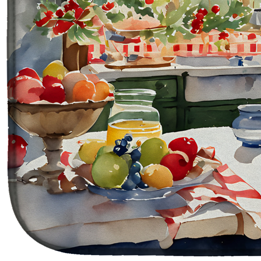Dish Drying Mat featuring breed specific Airedale Terrier artwork. Celebrate Christmas with this Christmas Dish Drying Mat. Say goodbye to messy countertops and soggy dish towels with our innovative dish drying mat. Our high-quality dish drying pad is designed to keep your countertops dry while offering a stylish and efficient solution. Whether you're air drying dishes, glasses, stemware, silverware, pots, pans, bottles, or even fruits and vegetables, our dish mat is the perfect choice. The 14 inches x 22 inches size fits most counters and dish drying racks, and the non-slip design ensures stability. Made with water-absorbent polyester and a polyurethane foam insert, our dish drying mat is not only functional but also durable. It's machine washable and printed in the USA for long-lasting use. The beautiful artwork adds flair to your kitchen decor, making it a perfect housewarming gift or present for any occasion. Upgrade your kitchen experience with our absorbent and versatile dish drying mat.