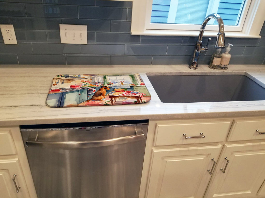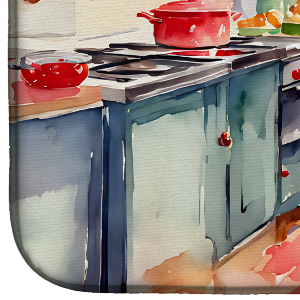 Dish Drying Mat featuring breed specific Airedale Terrier artwork. Celebrate Christmas with this Christmas Dish Drying Mat. Say goodbye to messy countertops and soggy dish towels with our innovative dish drying mat. Our high-quality dish drying pad is designed to keep your countertops dry while offering a stylish and efficient solution. Whether you're air drying dishes, glasses, stemware, silverware, pots, pans, bottles, or even fruits and vegetables, our dish mat is the perfect choice. The 14 inches x 22 inches size fits most counters and dish drying racks, and the non-slip design ensures stability. Made with water-absorbent polyester and a polyurethane foam insert, our dish drying mat is not only functional but also durable. It's machine washable and printed in the USA for long-lasting use. The beautiful artwork adds flair to your kitchen decor, making it a perfect housewarming gift or present for any occasion. Upgrade your kitchen experience with our absorbent and versatile dish drying mat.