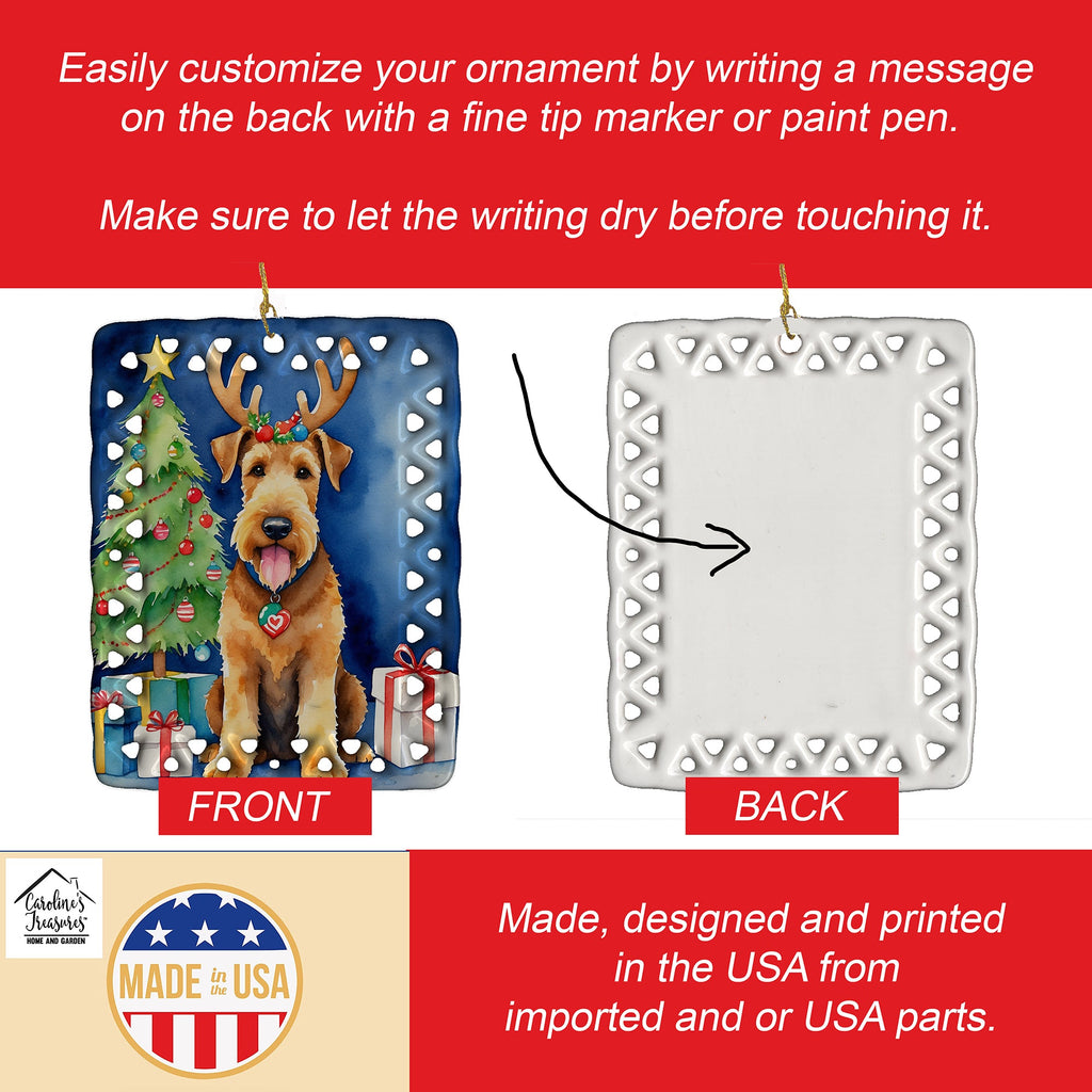 Airedale Terrier Christmas Reindeer Porcelain Ornament