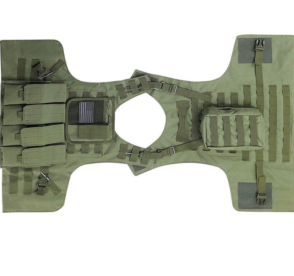 All pouches are attached to the PALS Molle and can be reconfigured to different locations on the vest. SIZE AND FIT It is adjustable for universal fit up to US Mens size XXL (18"x45" so up to 45" waist).