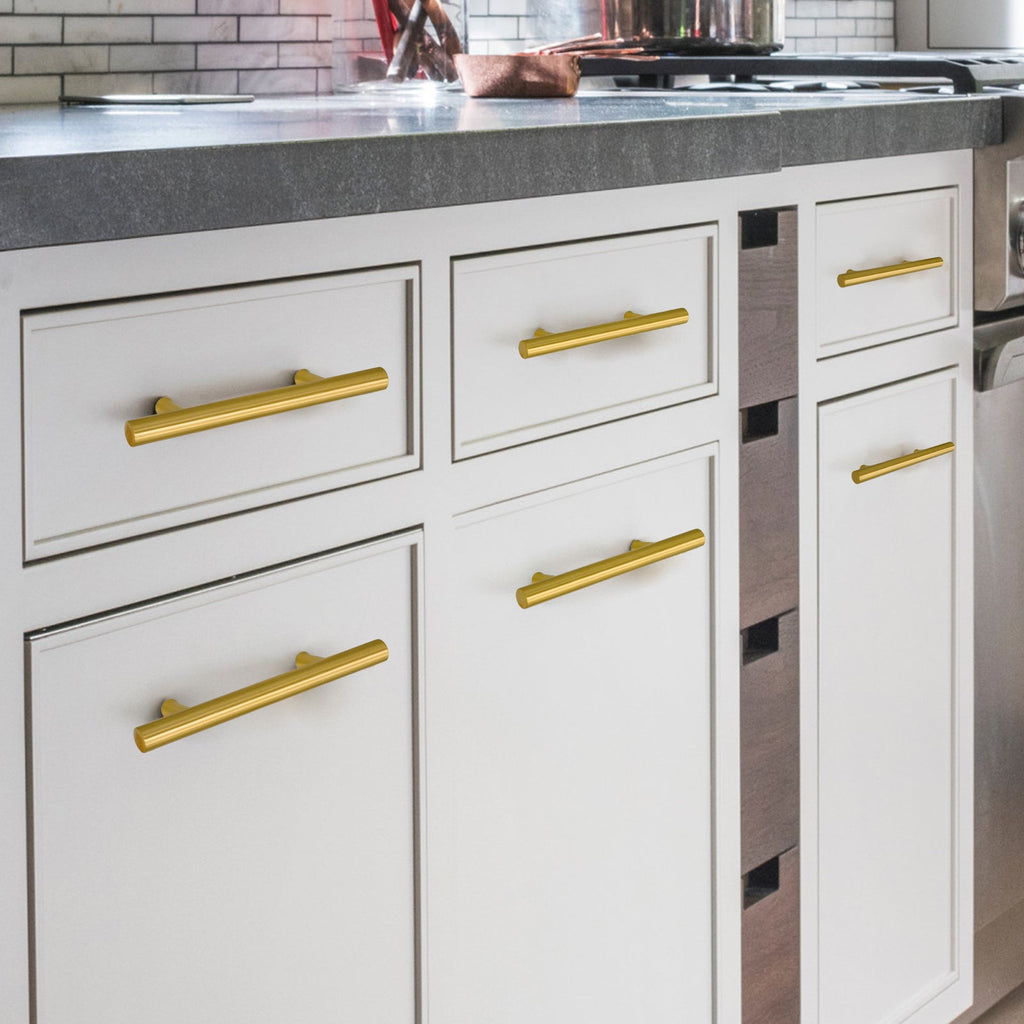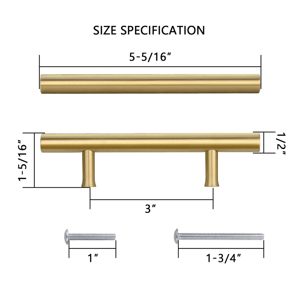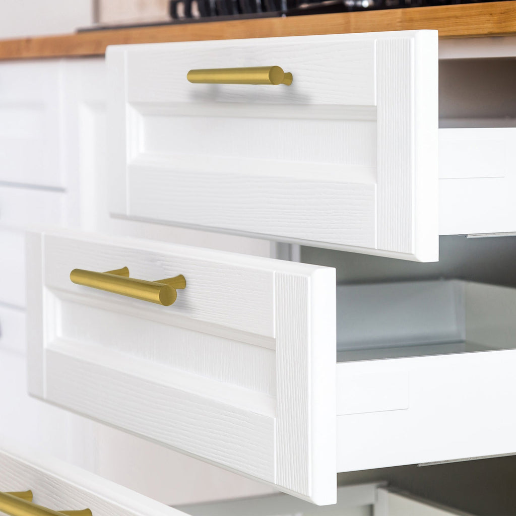Akicon™ 3 Inch Hole Center Brushed Gold Kitchen Cabinet Handles 100% Solid Brass Drawer Pulls AK01930-BG