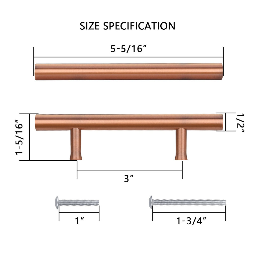 Akicon™ 3 Inch Hole Center Copper Kitchen Cabinet Handles 100% Solid Brass Drawer Pulls AK01930-C