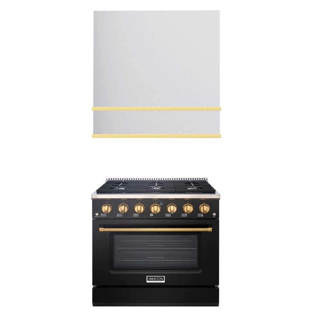 Akicon 36" Stainless Steel Range Hood with 600 CFM Insert & 6-Burner Gas Range Combo – Powerful Ventilation, Convection Oven, Multiple Finishes