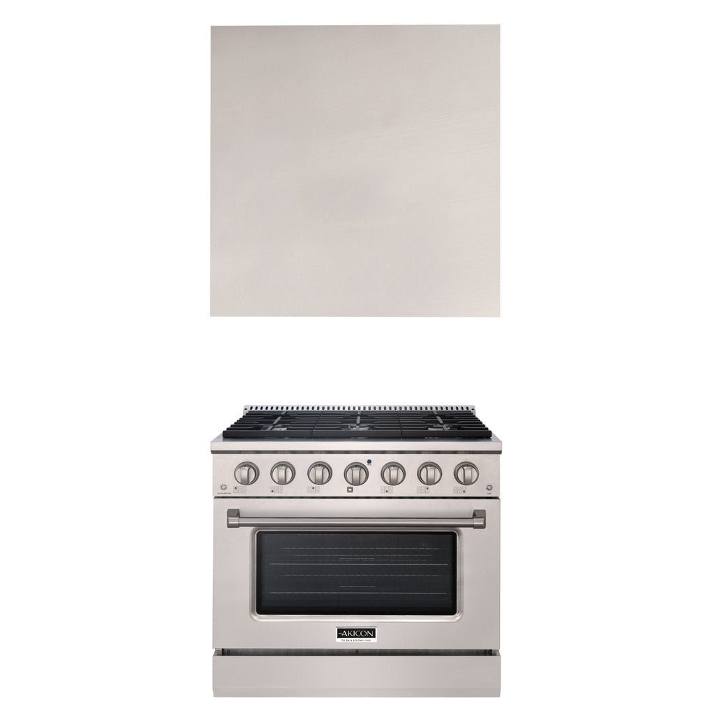 Akicon 36" Stainless Steel Range Hood with 600 CFM Insert & 6-Burner Gas Range Combo – Powerful Ventilation, Convection Oven, Multiple Finishes