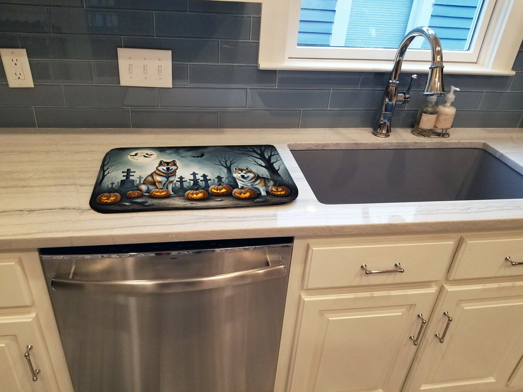Dish Drying Mat featuring breed specific Akita artwork. Celebrate Halloween with this Halloween Dish Drying Mat. Say goodbye to messy countertops and soggy dish towels with our innovative dish drying mat. Our high-quality dish drying pad is designed to keep your countertops dry while offering a stylish and efficient solution. Whether you're air drying dishes, glasses, stemware, silverware, pots, pans, bottles, or even fruits and vegetables, our dish mat is the perfect choice. The 14 inches x 22 inches size fits most counters and dish drying racks, and the non-slip design ensures stability. Made with water-absorbent polyester and a polyurethane foam insert, our dish drying mat is not only functional but also durable. It's machine washable and printed in the USA for long-lasting use. The beautiful artwork adds flair to your kitchen decor, making it a perfect housewarming gift or present for any occasion. Upgrade your kitchen experience with our absorbent and versatile dish drying mat.