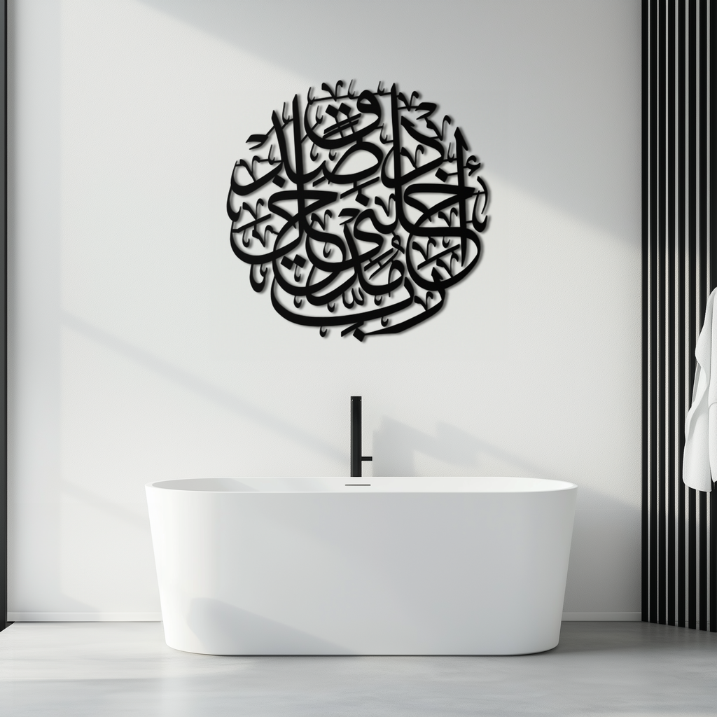 Add a spiritual and elegant touch to your home with this Al-Isra 17 Arabic Calligraphy Metal Wall Art. Designed with intricate Islamic calligraphy, this piece beautifully captures the essence of the Al-Isra 17 verse in a stunning circular composition. Made from 1.5mm premium steel, this wall art is crafted to last, featuring a smooth, electrostatic powder-coated finish for durability and long-term use.
