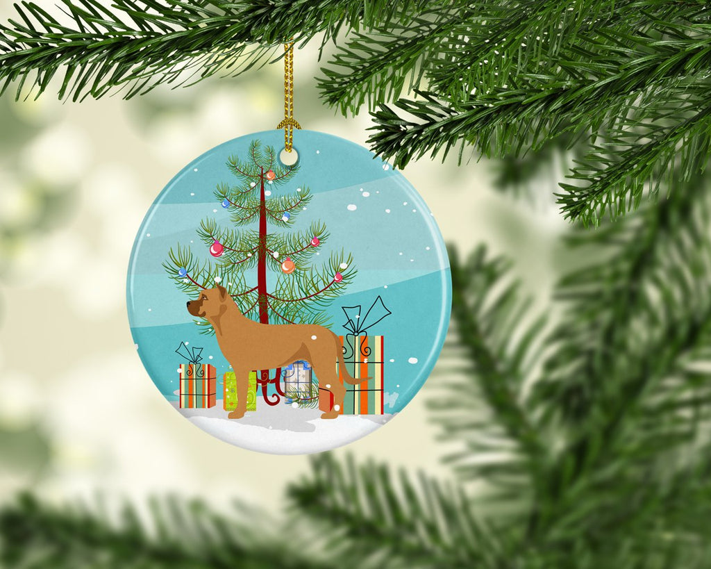 Decorate your space with our Christmas Alano Espanol artwork on a Ornament. Add a touch of personalized charm to your Christmas tree this holiday season with our Ceramic Ornament. Measuring 2.8125 inches in diameter, this round porcelain ornament beautifully reflects your festive lights, enhancing your holiday decor. The gloss surface sets off the vibrant, full-color artwork contributed by one of our talented artists, bringing a pop of color and joy to your tree. This Ceramic Ornament doesn't stop at being merely decorative. The white back is designed for personalization. Write a heartfelt message, mark a special year, or inscribe a date with a paint pen or a permanent marker to create a treasured memento. Please ensure you allow any personalization to dry thoroughly before handling to maintain the pristine finish. Included with the ornament is a delicate gold cord for easy hanging. Made in the USA, this Ceramic Ornament makes an exceptional gift for a pet sitter, teacher, family member, or anyone you wish to share a little Christmas magic with. With its blend of style, charm, and personal touch, it's a meaningful addition to any Christmas tree.