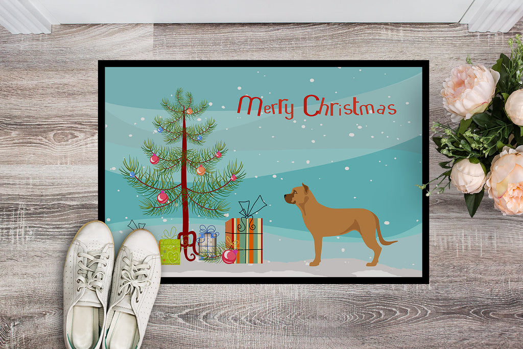 Decorate your space with our Christmas Alano Espanol artwork on a Doormat. Welcome your guests in style with our Artwork Door Mat, designed to withstand almost any weather condition. This mat, measuring approximately 24 by 36 inches, is held together by durable black binding tape. Its top layer, composed of polyester felt, is dyed with the eye-catching image you see on the mat. A few layers below provide the mat with stability, while its rubber bottom is stamped to help prevent slipping and ensures safety. Our mat works wonderfully as both an indoor or outdoor door mat. For cleaning, simply hose it off with water or use a power washer - no need for any cleaner that produces suds. Avoid scrubbing with a brush, instead, opt for the vacuum on floor setting. Designed manufactured and printed in the USA, this mat is a perfect addition to your porch, outdoor kitchen, entryway, or any indoor space. Its unique design makes it a charming decorative rug that greets your guests and adds a stylish touch to your home decor.