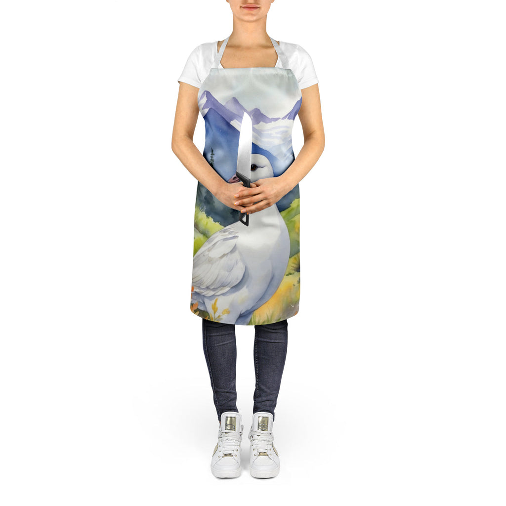 Apron featuring breed specific Willow Ptarmigan artwork. Elevate your cooking, baking, and grilling experiences with our versatile Kitchen or BBQ Apron. This Bib Style apron isn't just limited to culinary activities - it also serves as an excellent baking apron, artist apron, server apron, gardening apron, or even a dog grooming apron. The apron showcases vibrant full-color artwork contributed by one of our talented artists, bringing a dash of style to your daily tasks. With dimensions of approximately 27"W x 30"H, it provides ample coverage to protect your clothing from spills and splashes. Our apron is meticulously crafted from 100% Ultra Spun Polyester, known for its durability and lightweight nature. The apron comes with white tie straps, ensuring a comfortable and adjustable fit for all. It's a perfect choice for kitchen apron enthusiasts, whether you are a woman or a man. Designed for easy maintenance, this apron is fully machine washable. The quick-drying polyester material actively reduces staining, keeping your apron looking fresh and new for longer. Our beautifully designed apron isn't just a functional kitchen accessory - it's a fashion statement in the culinary world!