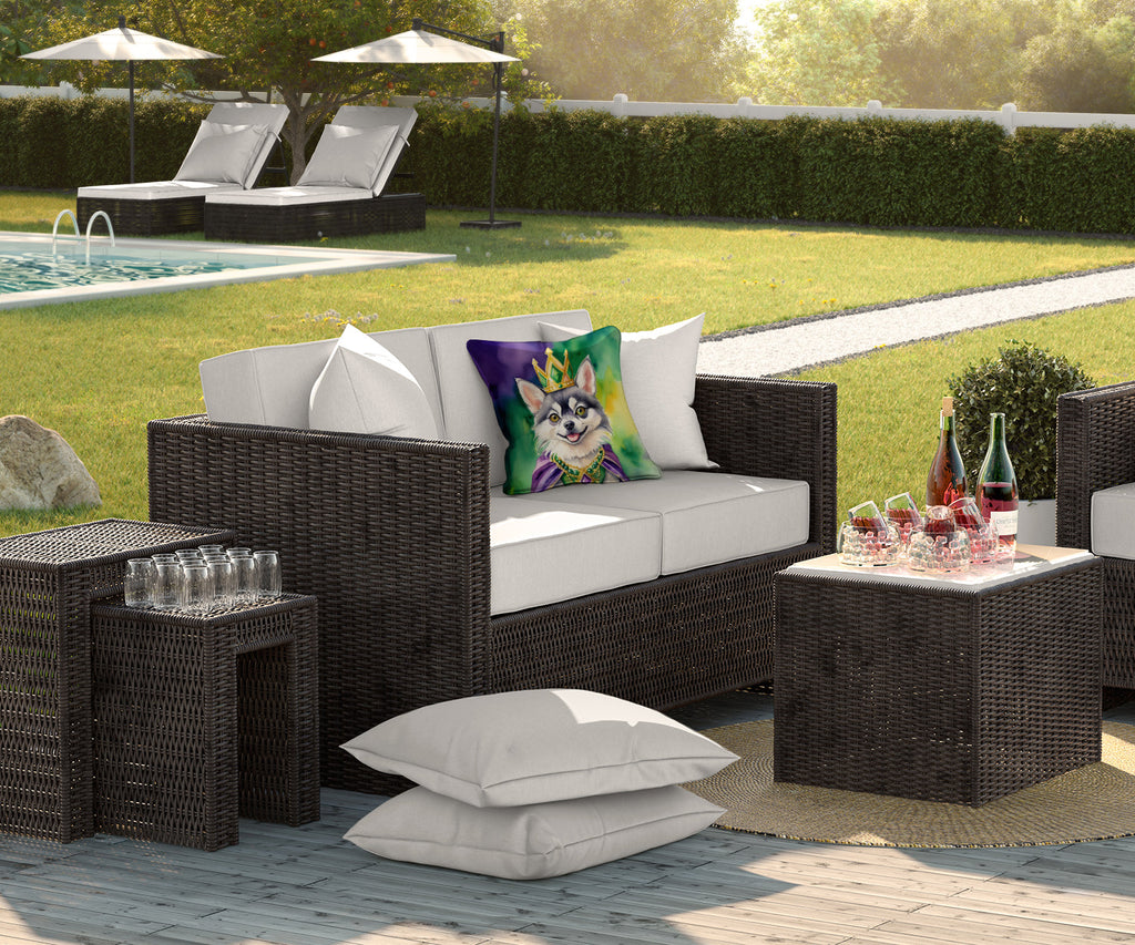 Throw Pillow featuring breed specific Alaskan Klee Kai artwork. Celebrate Mardi Gras with this Mardi Gras Pillow. Revitalize your outdoor or indoor living space with Caroline's Treasures 18x18 Fabric Decorative Pillow. With a generously sized dimension of approximately 18 inches by 18 inches, this pillow makes a comfortable and aesthetic addition to any seating area. Made from a unique, water-resistant material developed by Caroline's Treasures, the pillow sham is 100% polyester fabric that's durable and ready to weather any condition. Its vibrant, full-color artwork will not fade over time as it is dyed with color-fast dyes. Whether you place it on your patio furniture, porch, veranda, or indoor couch, its soft canvas fabric ensures a cozy experience. The pillow is handcrafted in the United States, featuring a sham created from three pieces of fabric and a polyester insert for enduring shape and overstuffed comfort. Despite being robustly built to endure the outdoors, it is as soft and snug as your favorite indoor cushions. Please note, as all our pillows are handmade, sizes may vary slightly, adding to the charm of this unique decorative item.