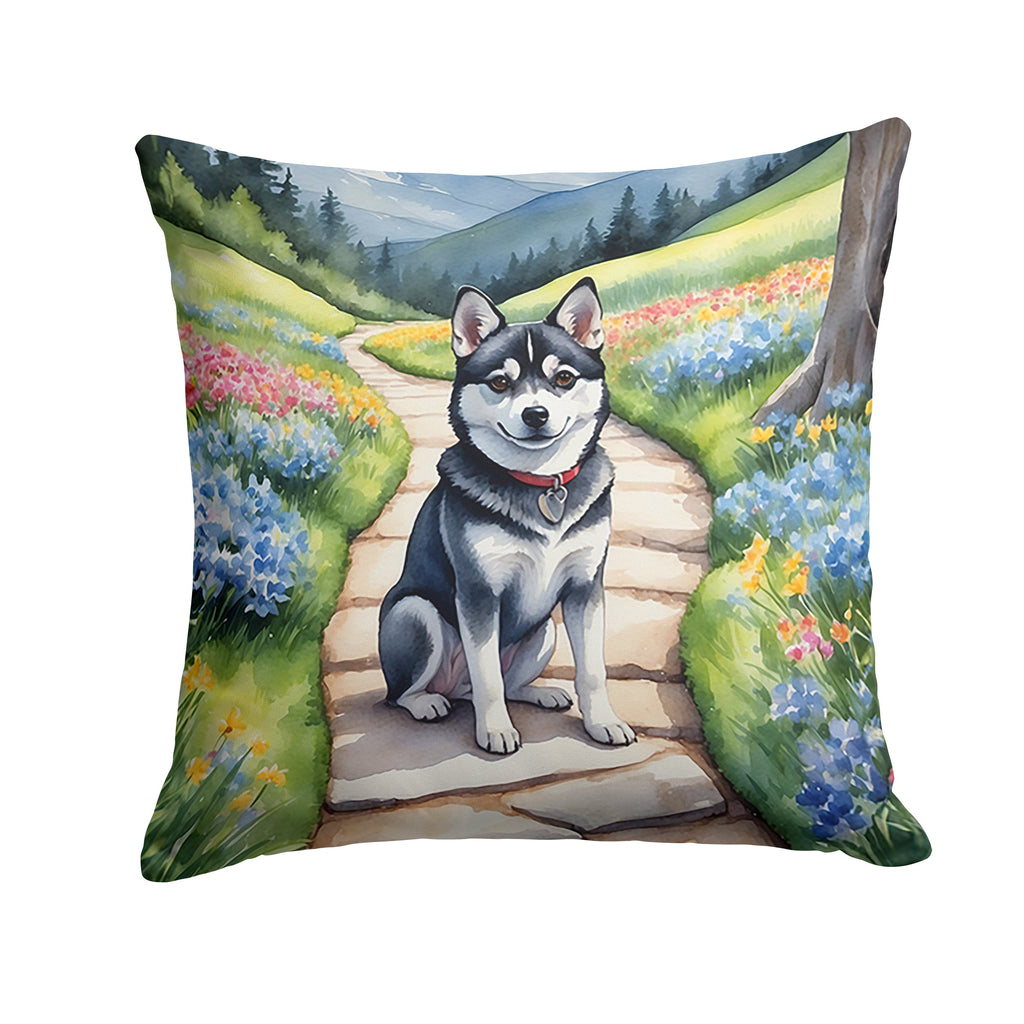 Decorate your space with our Alaskan Klee Kai artwork on a Pillow. Bring a bit of Spring into your home with a Spring Pillow. Revitalize your outdoor or indoor living space with Caroline's Treasures 18x18 Fabric Decorative Pillow. With a generously sized dimension of approximately 18 inches by 18 inches, this pillow makes a comfortable and aesthetic addition to any seating area. Made from a unique, water-resistant material developed by Caroline's Treasures, the pillow sham is 100% polyester fabric that's durable and ready to weather any condition. Its vibrant, full-color artwork will not fade over time as it is dyed with color-fast dyes. Whether you place it on your patio furniture, porch, veranda, or indoor couch, its soft canvas fabric ensures a cozy experience. The pillow is handcrafted in the United States, featuring a sham created from three pieces of fabric and a polyester insert for enduring shape and overstuffed comfort. Despite being robustly built to endure the outdoors, it is as soft and snug as your favorite indoor cushions. Please note, as all our pillows are handmade, sizes may vary slightly, adding to the charm of this unique decorative item.