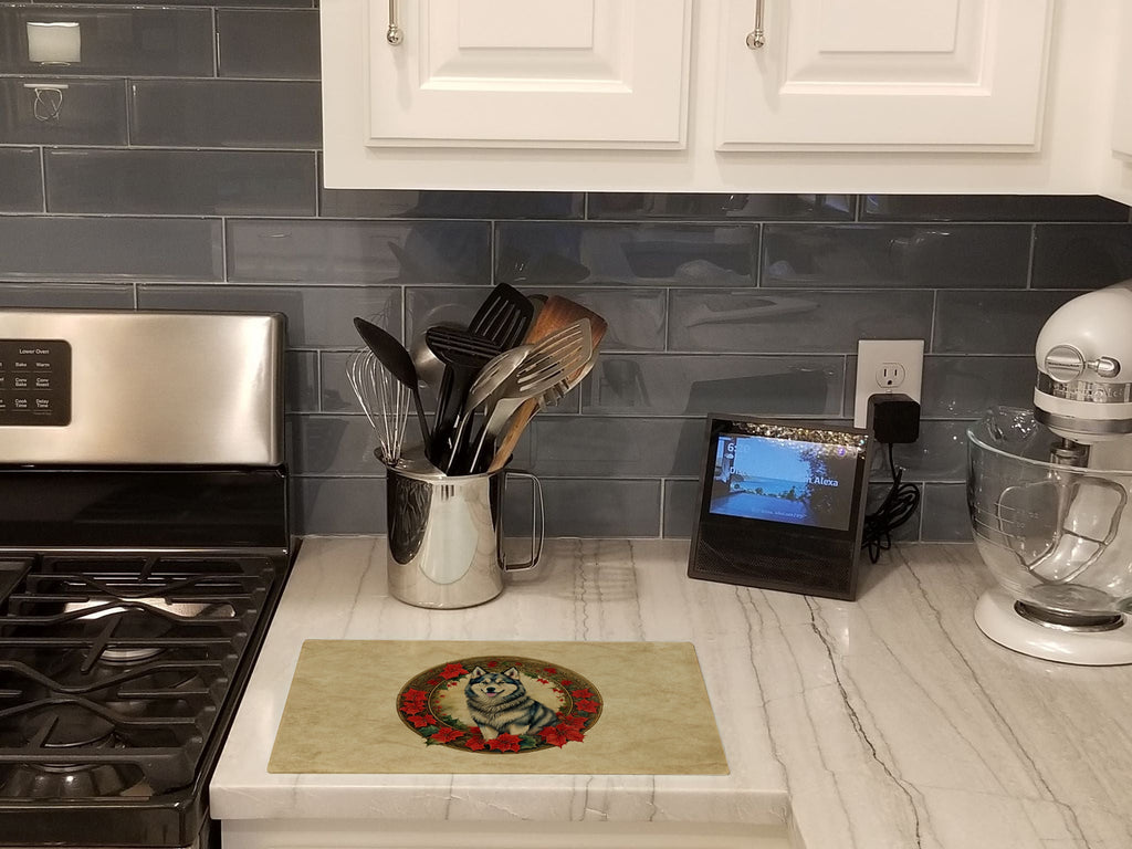 Alaskan Malamute Christmas Flowers Glass Cutting Boards – Durable, Decorative Kitchen Art