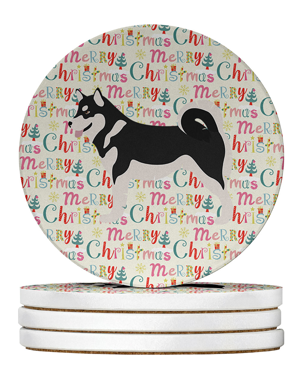 Alaskan Malamute Merry Christmas Large Sandstone Coasters Pack of 4