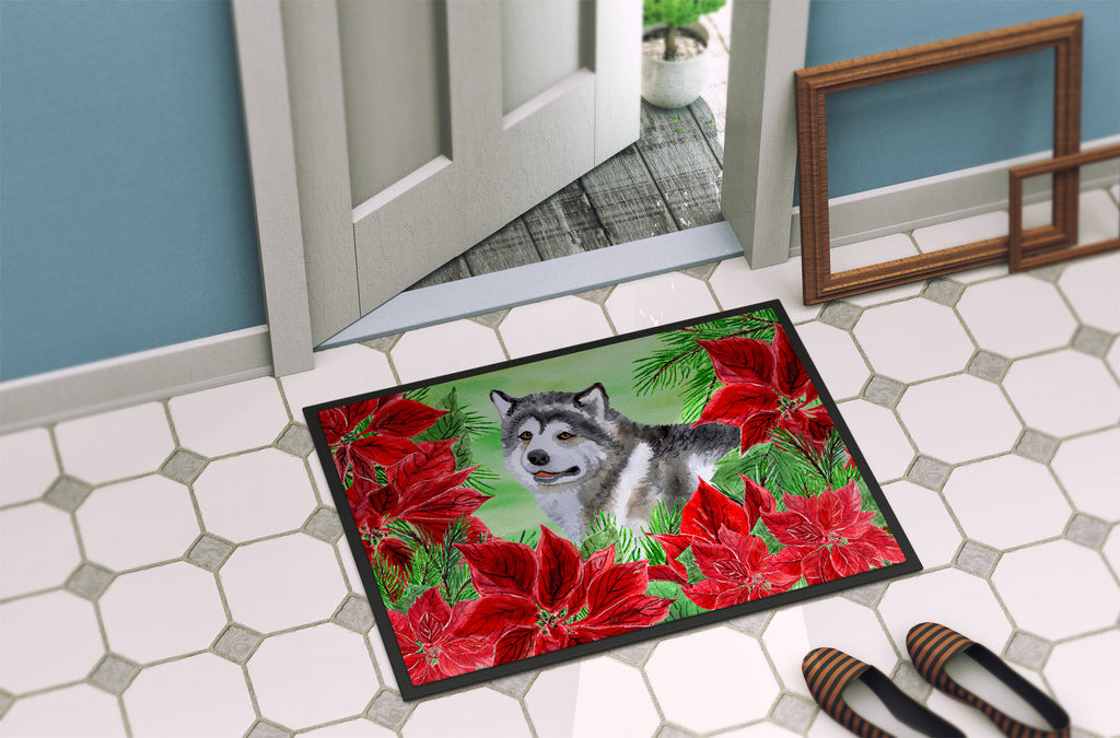 Alaskan Malamute Poinsettas Doormat - 24x36 Decorative Floor Mat – Indoor/Outdoor Rug with Artistic Flair CK1287JMAT