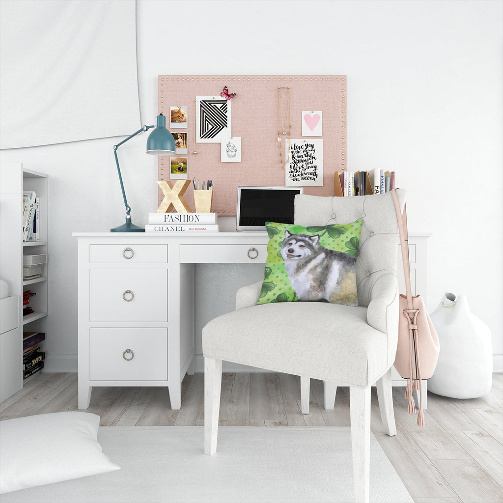 Decorate your space with our St Patrick's Day Alaskan Malamute artwork on a Pillow. Add a touch of vibrancy and comfort to your outdoor seating with Caroline's Treasures Fabric Decorative Pillow. Measuring approximately 14 inches by 14 inches, this outdoor pillow is crafted to elevate the appeal of your patio furniture, infusing it with vivid color and artistic flair. The pillow includes a 100% Polyester Fabric sham filled with a quality pillow form to provide superior comfort. Innovatively made from our brand new material, specifically woven for its water resistance, this pillow is designed for durability. The soft canvas fabric offers versatility in use, fit for your indoor couch or your outdoor patio, porch, or veranda. The fabric is dyed with colorfast dyes built for resilience against weather conditions, ensuring the pillow retains its beauty over time. Constructed by sewing three fabric pieces to create a sham, the polyester insert is then nestled inside to form the pillow, resulting in an overstuffed pillow that maintains its shape. Both the sham and the pillow insert are proudly made in the United States. As the pillows are handcrafted, there may be minor variations in size, further enhancing their unique charm. Experience comfort in style with Caroline's Treasures Fabric Decorative Pillow.