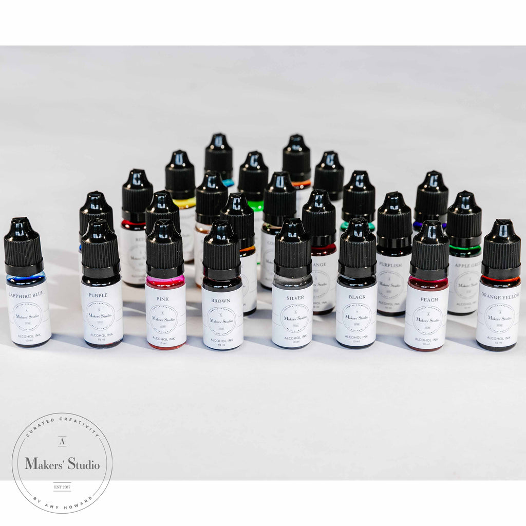 Alcohol Inks are fast drying, permanent, pigment and dye inks that allow you to create beautiful works of art on papers, encaustic, and more. The Alcohol Ink Bundle includes 24 vibrant colors to pair with our Acrylic Glacier Resin and use to create the most beautiful custom resin art.