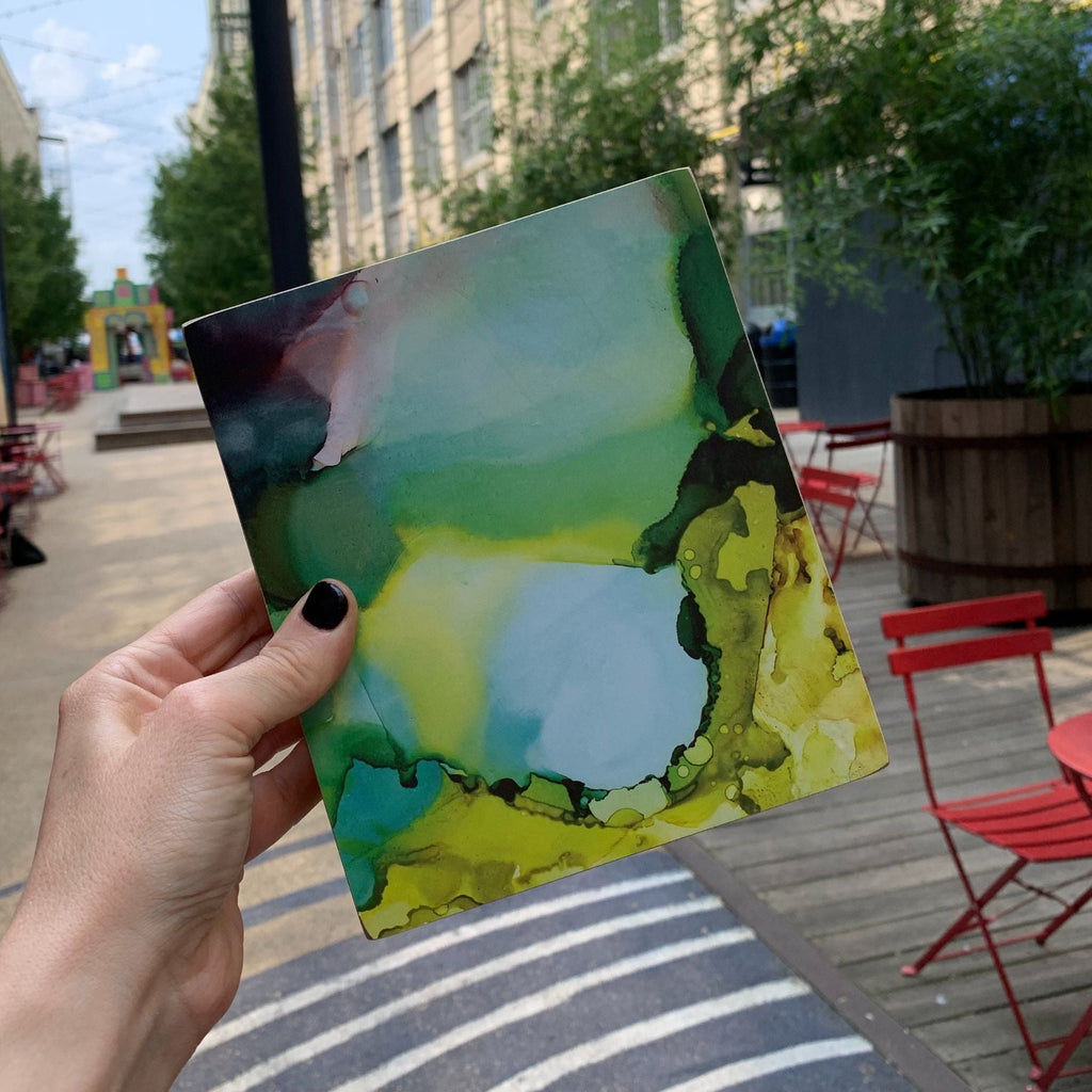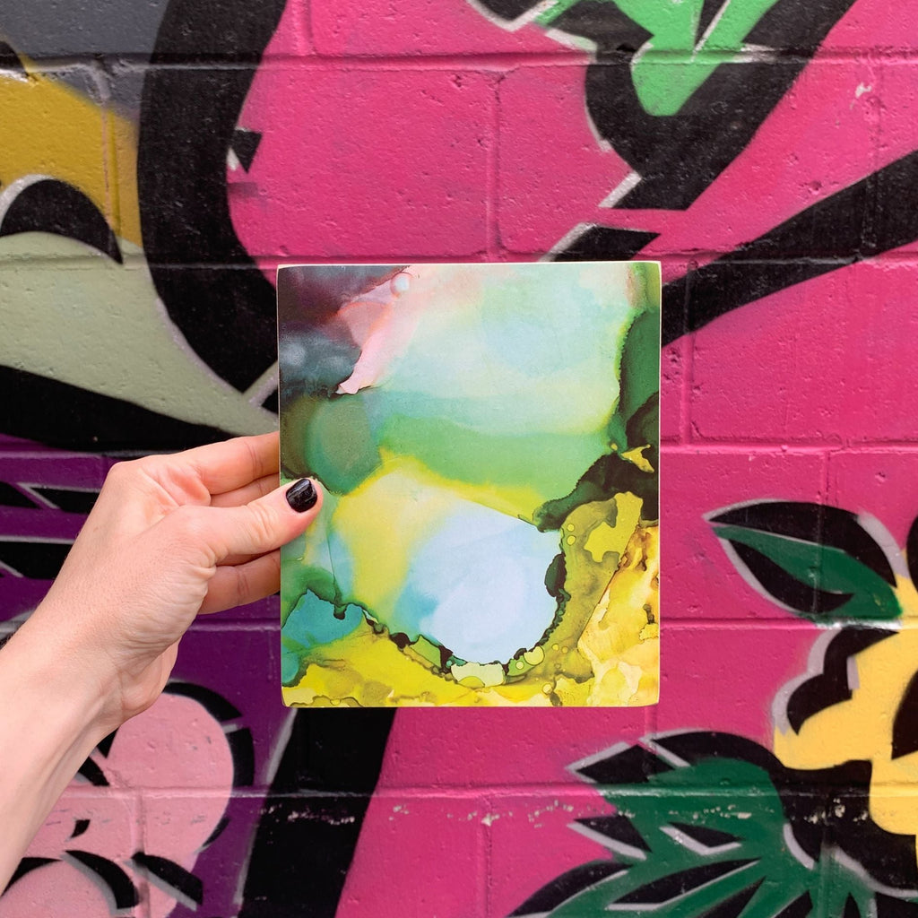 Replicated from original art created at the Friendship Heart Gallery in downtown Lancaster, PA, this wooden box sign features an earthy colored alcohol ink design.