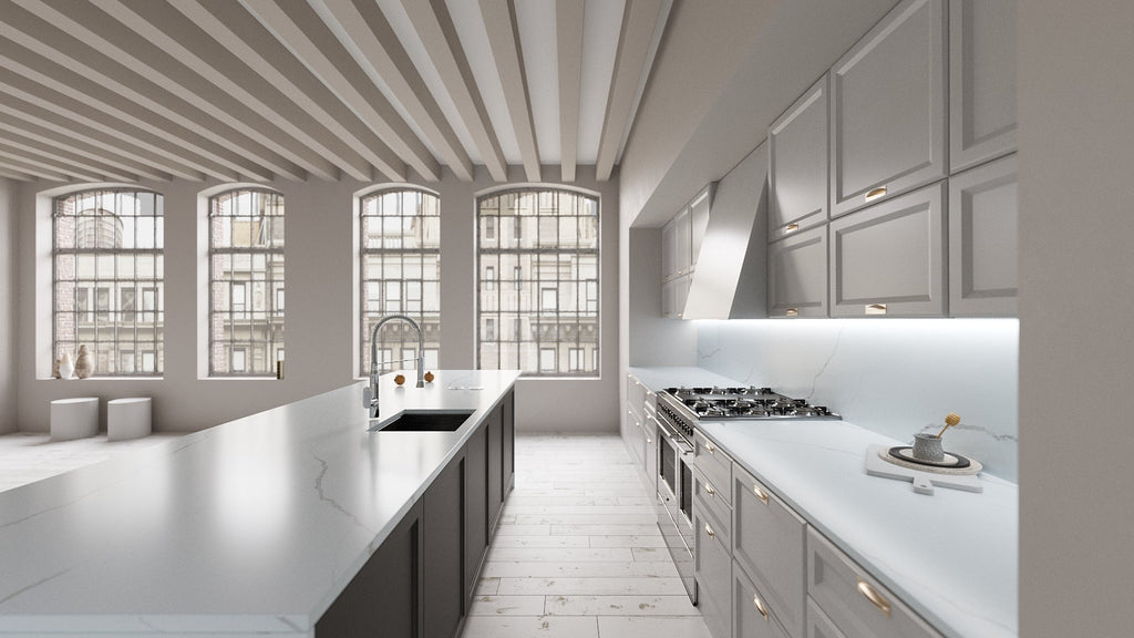 Picture yourself in a magical world, surrounded by the beauty of natural Calacatta marble. Our Vicostone Alessandria boasts stunning veins that could easily be mistaken for underground rivers from millions of years ago.