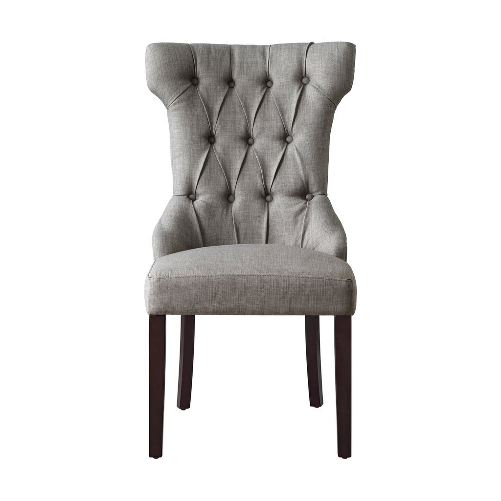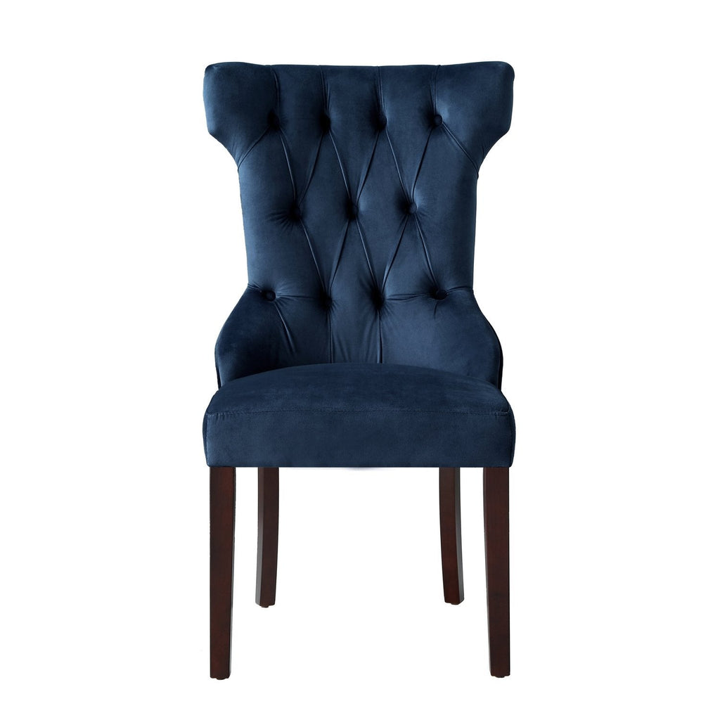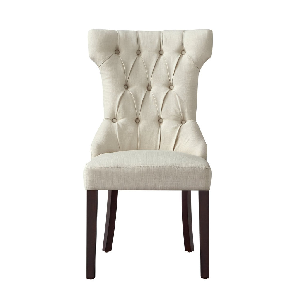 - BUTTON TUFTED - A classic shape and diamond button tufted upholstery makes these chairs incredibly stylish. Feature chic and comfortable hourglass silhouette with added charm to the tapered back and rich wood legs, gently curved in espresso finish. These chairs will be your guests' favorites.
