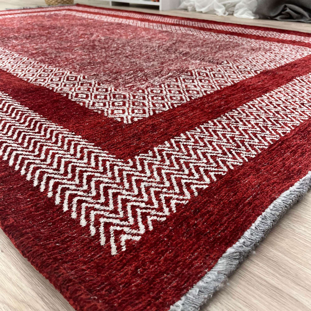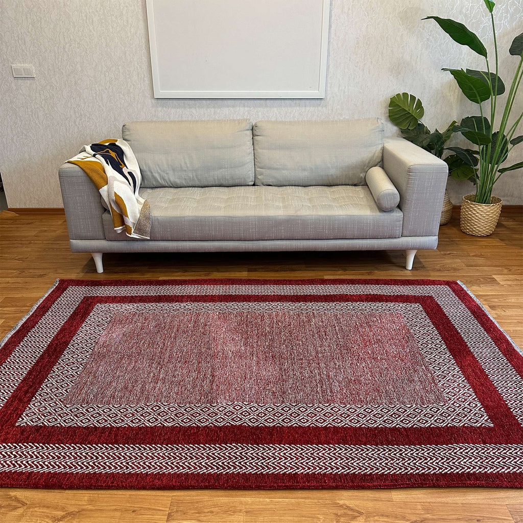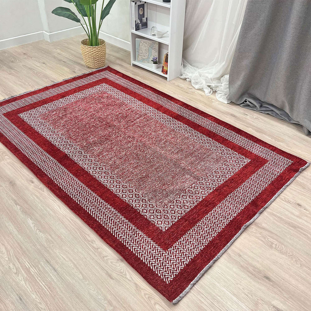 Alfa Rich 7x10 Red Burgundy area rugs are cotton, pet friendly, easy to clean, soft, foldable and machine washable, but we recommend laundromat for large sizes! Alfa Rich washable area rugs are woven, odorless and lint-free. But wait, there's more! Alfa Rich area rugs have a medium pile (0.50 inches). Alfa Rich rugs effortlessly combine the charm of classic and modern designs with practicality for every home, office or lifestyle. Alfa Rich rugs, which add a new touch to the aesthetics of Turkish rugs, have vivid colors and are being produced on our electric looms, given their final shapes by hand weaving and made ready for your use. It's like a dream come true! Alfa Rich washable area rugs can be used as living room rug, bedroom rug, kids room rug, kitchen rug, bathroom rug, runner rug, entryway rug, hallway rug, laundry room rug, nursery rug and office rug. They are also very suitable option for use in places such as a summer or winter garden. How adorable is that? Caring for your new rug is a breeze! Suitable for vacuum cleaner and robot vacuum cleaner. Do not beat with a hard object. Do not expose to direct sunlight for a long time. Protect from humid environments. Do not pull threads from your rug, if there are threads that have come off, cut them from the surface with the help of scissors. When not in use, it is recommended to be wrapped and packaged in rolls and stored. Easy-peasy! Alfa Rich area rugs are lovingly wovened by us in Turkiye, a place where artistry and tradition intertwine. Alfa Rich area rugs are woven from 60% cotton 40% polyester. Oh, and one little note: Please keep in mind that all rug sizes are nominal, and a slight variance of +/- 3% is perfectly normal. We want to ensure you have all the details! Our utmost desire is to see you absolutely thrilled with your purchase. Your happiness is our priority! Kindest Regards. Alfa Rich