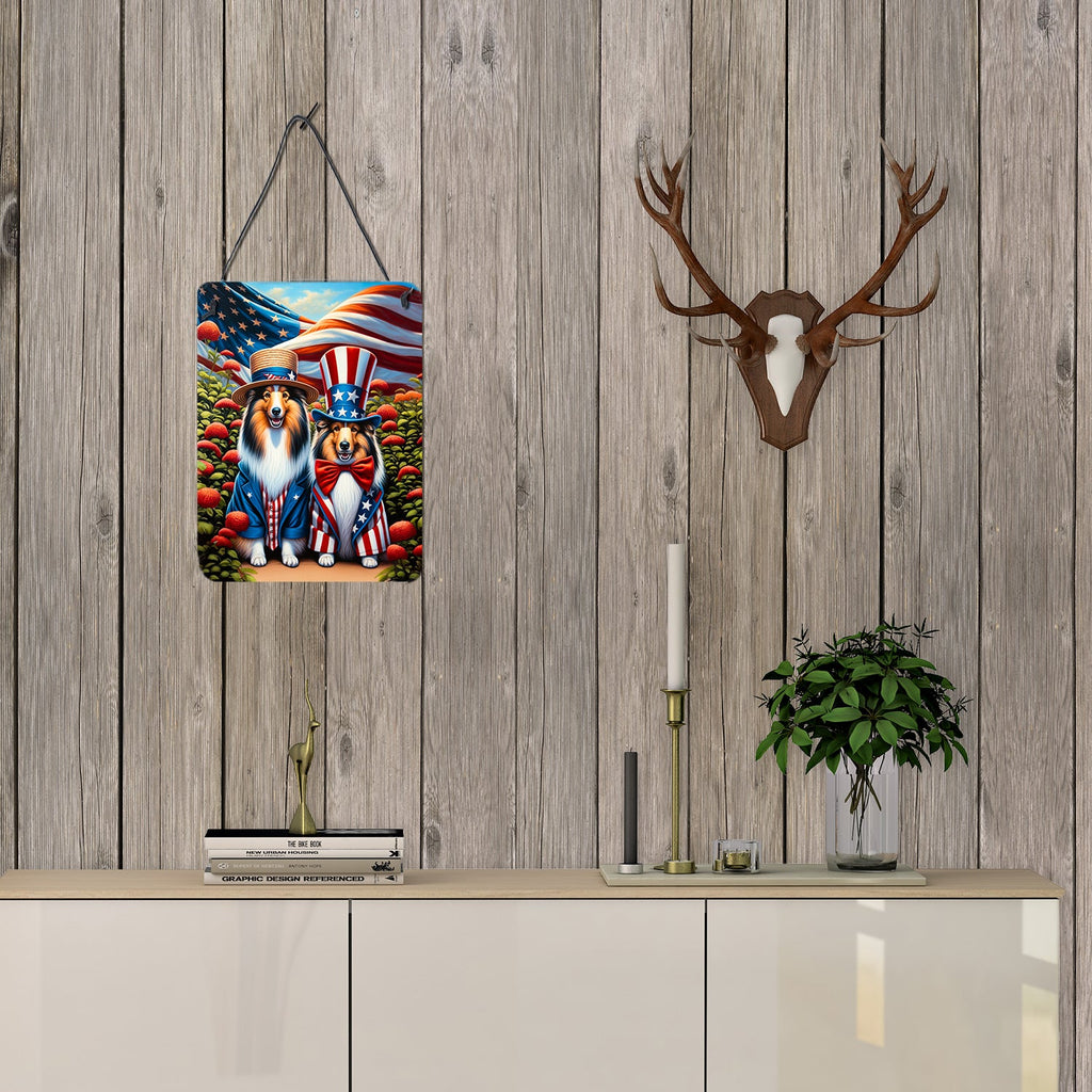 Decorate your space with our Sheltie Shetland Sheepdog artwork on a Metal Print. Spruce up your space with our Indoor or Outdoor Aluminum Artwork Prints. Designed to brighten your kitchen, bathroom, office, or outdoor areas like patios and porches, these prints offer a unique way to decorate your home or workspace. Measuring 12 by 16 inches, the prints are vibrant, full color, and bring an element of artistry to any setting. What makes these prints special is their durability and resistance to the elements. If placed outside, they can withstand direct sunlight for a considerable time before showing signs of fading. Crafted from rust and fade-resistant aluminum, these prints are built to last and maintain their vibrant colors. Each print comes with a black hanging rope and rounded corners for safety. The back of the print showcases a brushed silver color, adding a touch of sophistication. The lightweight design allows easy hanging with virtually any nail or screw, making installation a breeze. Whether indoors or outdoors, these prints add a distinctive touch to any space.