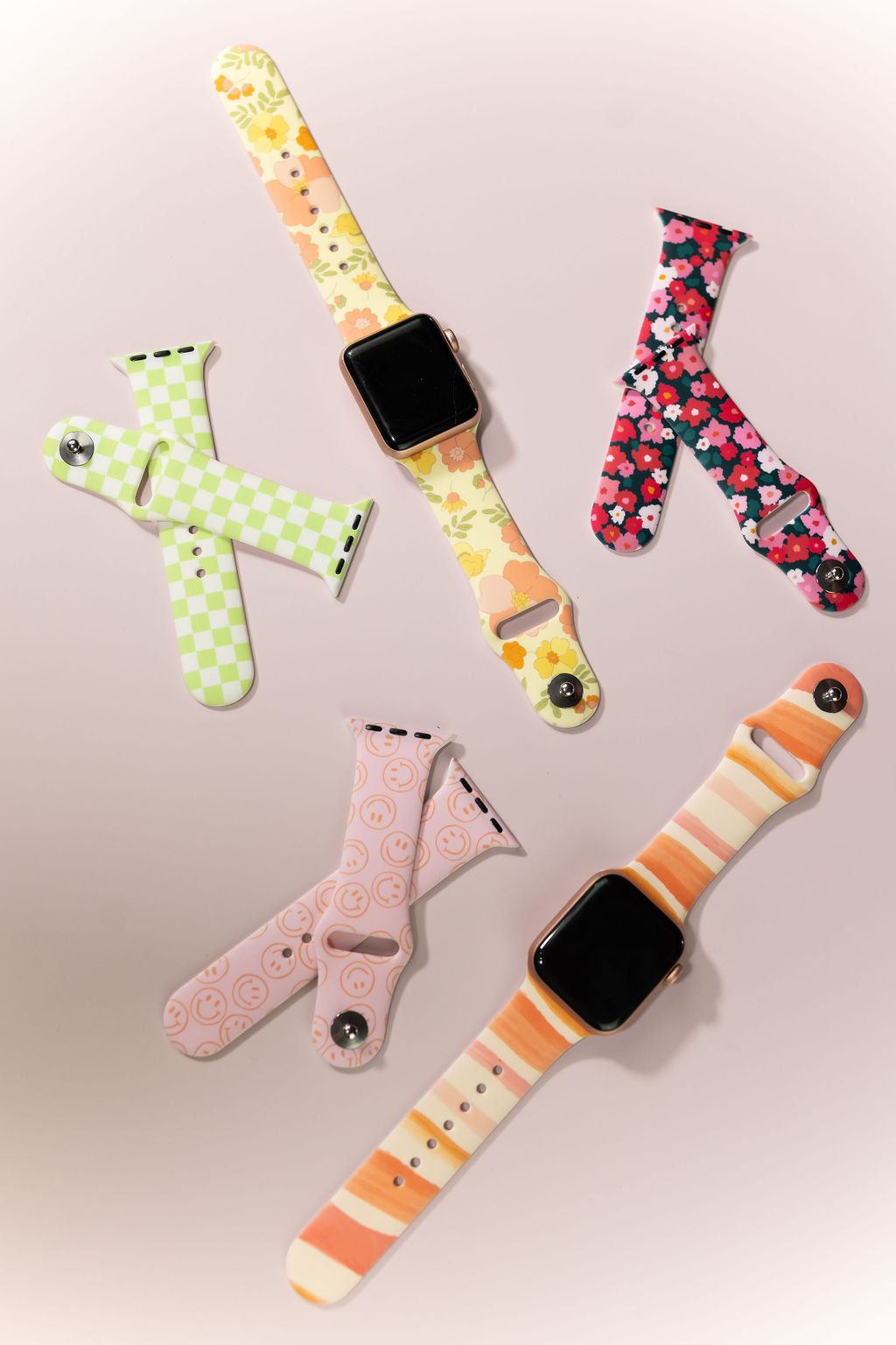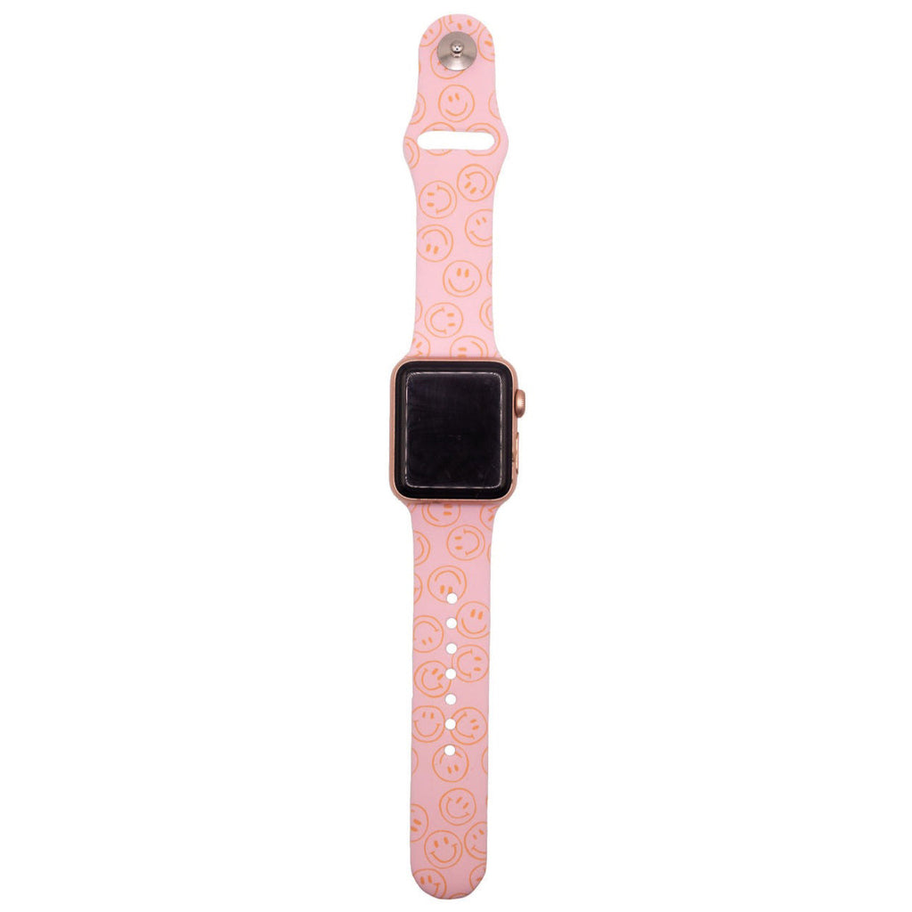 Strap Design: Light bubblegum pink with peach orange smiley faces