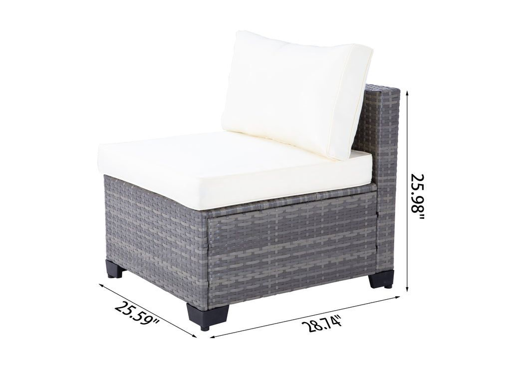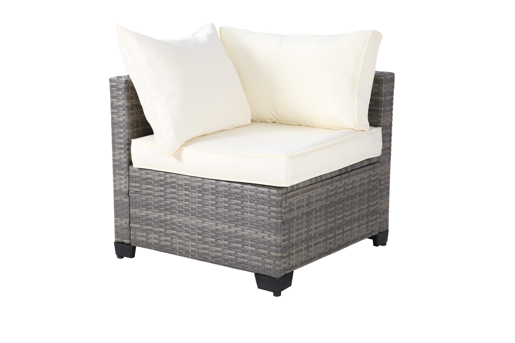 - 1. Suitable for the whole family, versatile scenariosThe 7-piece set includes a sofa, coffee table and lounge chair. It can be flexibly assembled to adapt to different courtyard sizes. It can meet the needs of family gatherings, friends' afternoon tea and enjoying the sun alone. This complete set can meet the needs of outdoor leisure.