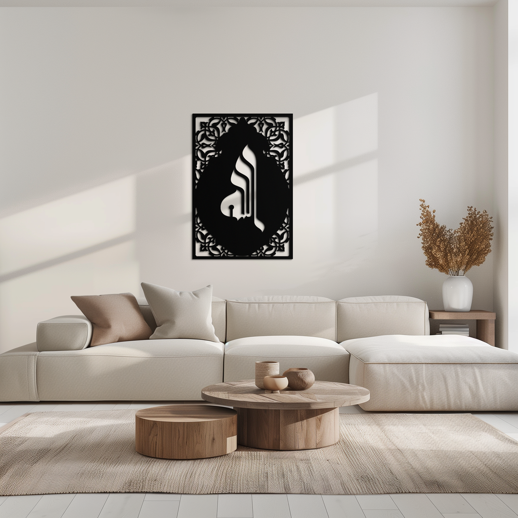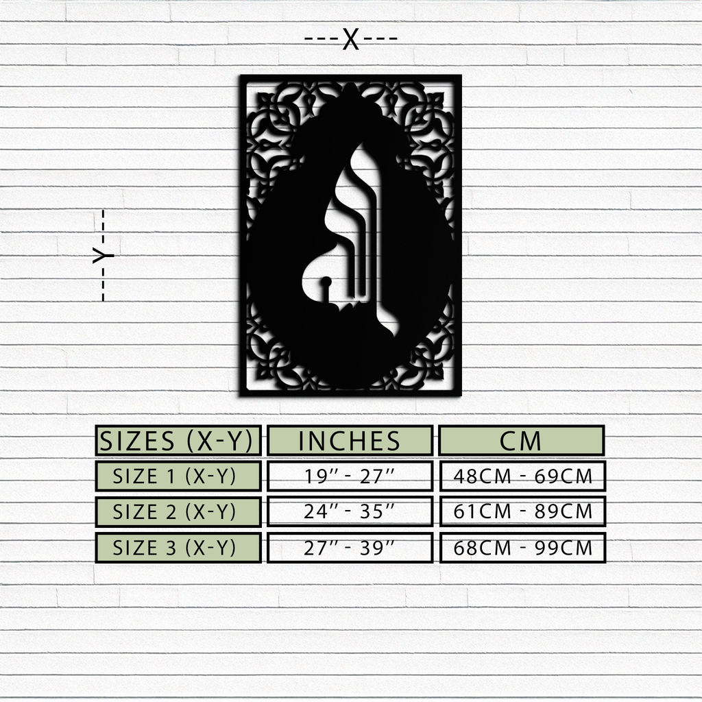 Enhance your space with the divine beauty of Allah Metal Wall Art, an exquisite piece of Islamic calligraphy that embodies faith and sophistication. This intricate design is crafted from 1.5mm premium steel, ensuring durability and elegance in any setting. Whether placed in a living room, office, prayer room, or mosque, this artwork serves as a reminder of spirituality and devotion.