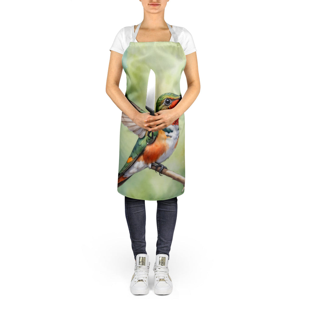 Apron featuring breed specific Allens Hummingbird artwork. Elevate your cooking, baking, and grilling experiences with our versatile Kitchen or BBQ Apron. This Bib Style apron isn't just limited to culinary activities - it also serves as an excellent baking apron, artist apron, server apron, gardening apron, or even a dog grooming apron. The apron showcases vibrant full-color artwork contributed by one of our talented artists, bringing a dash of style to your daily tasks. With dimensions of approximately 27"W x 30"H, it provides ample coverage to protect your clothing from spills and splashes. Our apron is meticulously crafted from 100% Ultra Spun Polyester, known for its durability and lightweight nature. The apron comes with white tie straps, ensuring a comfortable and adjustable fit for all. It's a perfect choice for kitchen apron enthusiasts, whether you are a woman or a man. Designed for easy maintenance, this apron is fully machine washable. The quick-drying polyester material actively reduces staining, keeping your apron looking fresh and new for longer. Our beautifully designed apron isn't just a functional kitchen accessory - it's a fashion statement in the culinary world!