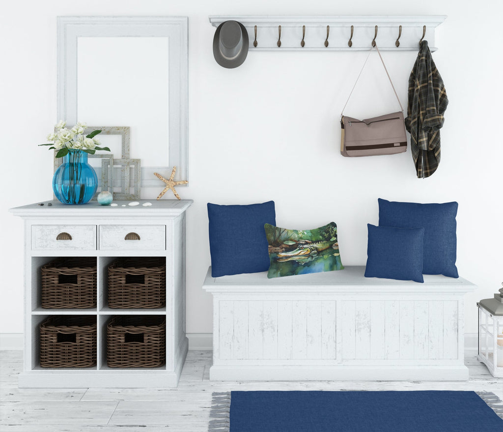 Decorate your space with our Alligator artwork on a Pillow. Embrace the fusion of comfort and style with Caroline's Treasures Fabric Decorative Pillow. This 12x16 inch outdoor pillow is designed to complement your patio furniture, adding a splash of color and artistry to your outdoor setting. Constructed with a 100% Polyester Fabric pillow sham filled with a plush pillow form, this cushion is as comfortable as it is durable. Our outdoor pillow utilizes a novel fabric, meticulously woven for enhanced water resistance. This soft canvas material is equally suited for your indoor couch as well as outdoor settings such as the patio, porch, or veranda. To ensure enduring vibrance, we employ colorfast dyes resistant to fading even when subjected to weather elements. The making of this pillow involves the delicate sewing together of three fabric pieces to create a sham, into which a polyester insert is carefully placed. The result is an overstuffed pillow that tenaciously holds its shape. With both the sham and the pillow insert crafted in the United States, these handmade pillows are a testament to superior local craftsmanship. Note that as these pillows are handmade, sizes may slightly vary, enhancing their unique appeal. Enjoy comfort in style with Caroline's Treasures Fabric Decorative Pillow.