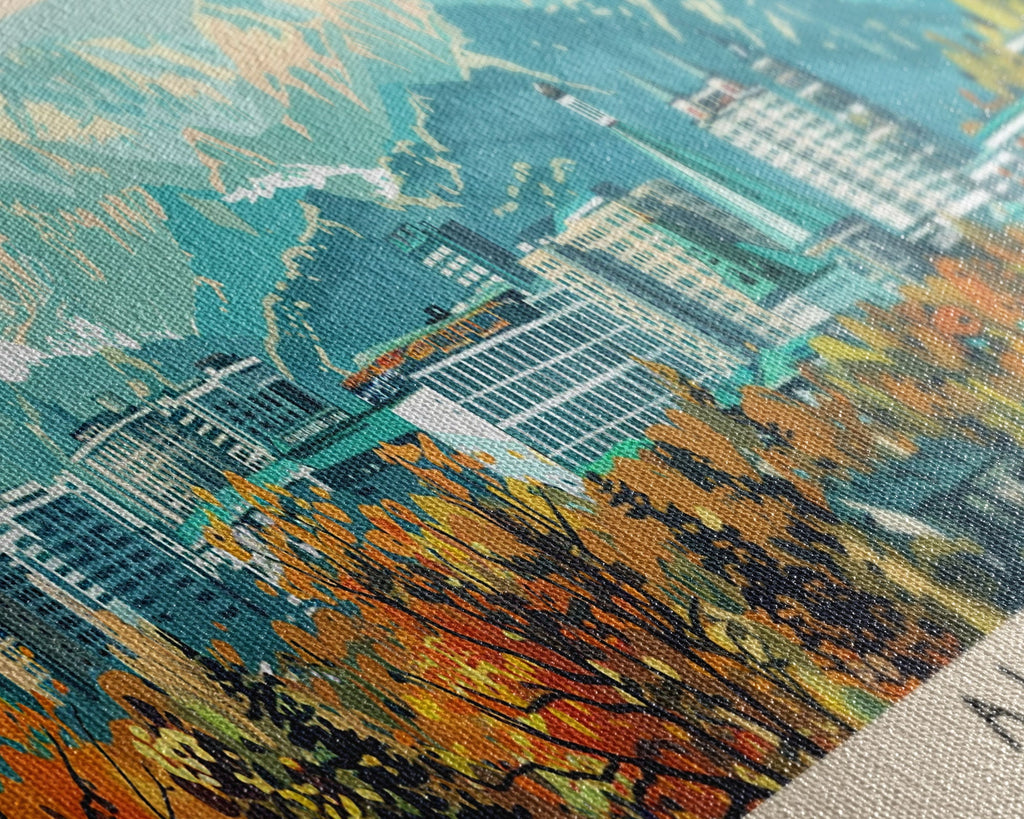 Almaty, Kazakhstan Panoramic Canvas Print, Almaty, Kazakhstan Painting, Kazakhstan Art, Almaty Travel Poster, Travel Art, Living Room Painting