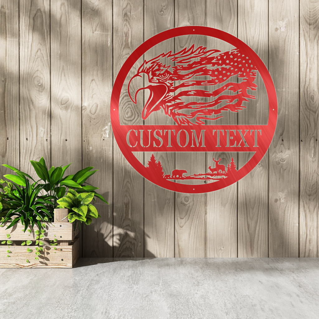 Add a touch of personalization to your outdoor space with the American Eagle Monogram. Made from 16 gauge steel and featuring a majestic or screaming eagle design, this powder coated monogram is sure to make a statement. Customize with your own text and enjoy the great outdoors in style.