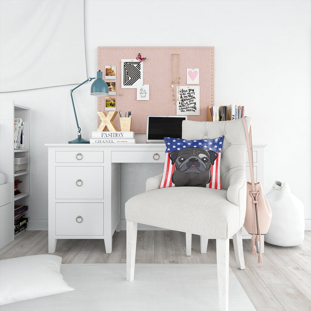 Decorate your space with our Pug artwork on a Pillow. Add a touch of vibrancy and comfort to your outdoor seating with Caroline's Treasures Fabric Decorative Pillow. Measuring approximately 14 inches by 14 inches, this outdoor pillow is crafted to elevate the appeal of your patio furniture, infusing it with vivid color and artistic flair. The pillow includes a 100% Polyester Fabric sham filled with a quality pillow form to provide superior comfort. Innovatively made from our brand new material, specifically woven for its water resistance, this pillow is designed for durability. The soft canvas fabric offers versatility in use, fit for your indoor couch or your outdoor patio, porch, or veranda. The fabric is dyed with colorfast dyes built for resilience against weather conditions, ensuring the pillow retains its beauty over time. Constructed by sewing three fabric pieces to create a sham, the polyester insert is then nestled inside to form the pillow, resulting in an overstuffed pillow that maintains its shape. Both the sham and the pillow insert are proudly made in the United States. As the pillows are handcrafted, there may be minor variations in size, further enhancing their unique charm. Experience comfort in style with Caroline's Treasures Fabric Decorative Pillow.