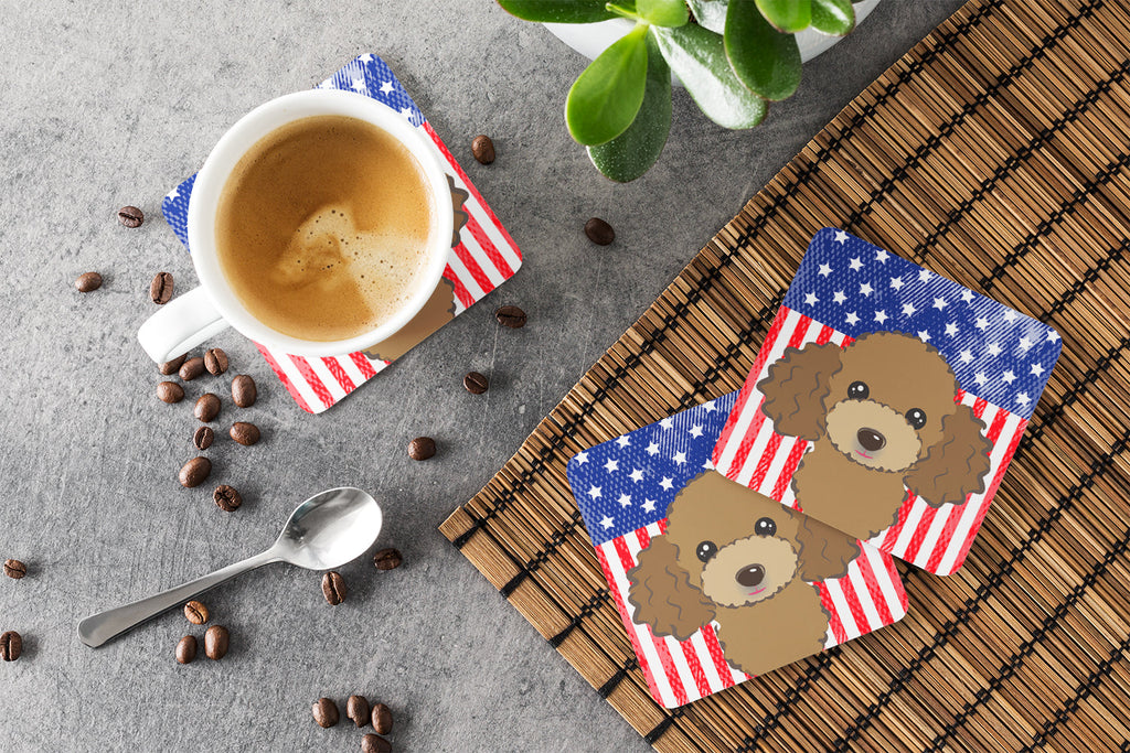 American Flag and Chocolate Brown Poodle Foam Coaster