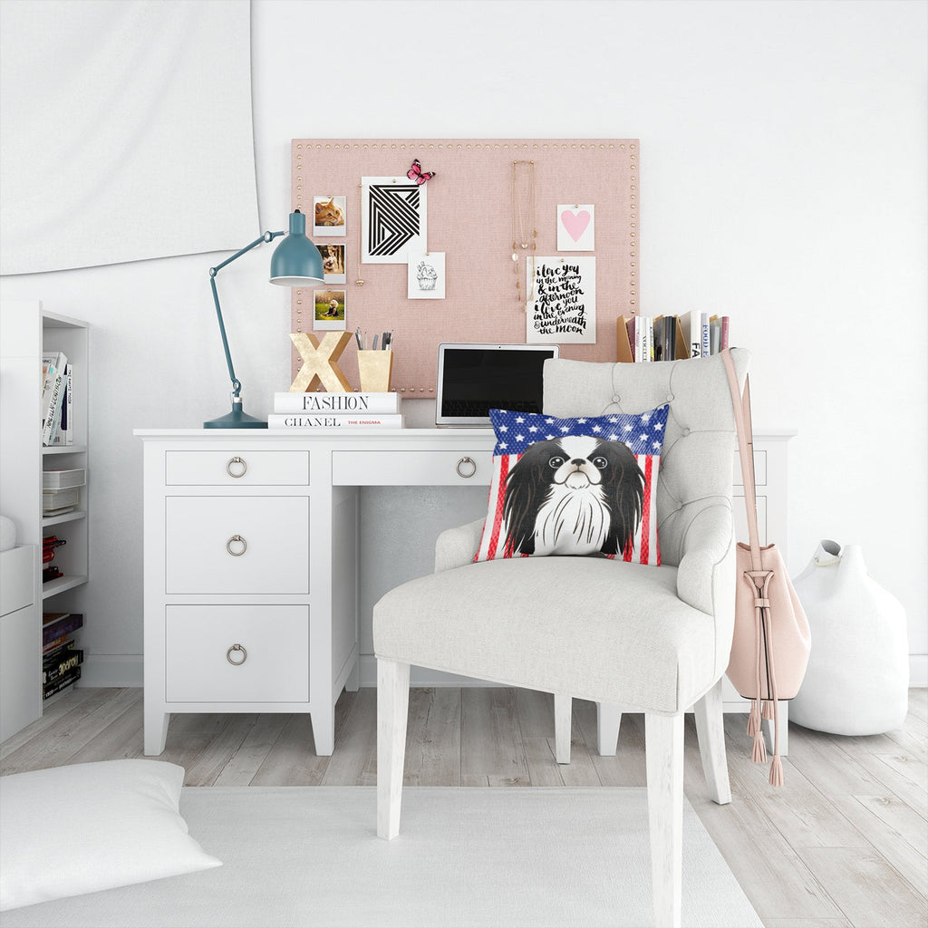 American Flag and Japanese Chin Throw Pillow - 14x14 Decorative Pillow – Art for Your Home & Patio BB2160PW1414