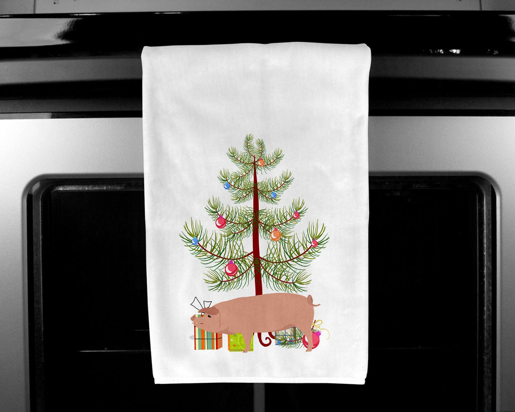Decorate your space with our Christmas American Landrace Pig artwork on a Kitchen Cotton Towels. Spruce up your kitchen decor with Caroline's Treasures Decorative White Kitchen Towel Set. This set of two dish towels showcases beautiful artwork from one of our talented artists, making them both practical and visually appealing. These towels are crafted from 100% cotton, offering excellent absorbency and durability, making them ideal for any kitchen task. Each white towel measures 19 inches by 28 inches, providing ample coverage for drying dishes or wiping up spills. The standout feature of these towels is the full-color artwork design printed on each one. They can serve as a vibrant accent in your kitchen, turning a functional item into a delightful piece of decor. When it comes to care, these towels are machine washable in cold water and can be dried on low heat. Remember to always use a pressing cloth when pressing the design, and avoid using bleach on the decorated towel. The Decorative White Kitchen Towel Set makes a great gift or a stylish addition to your own kitchen.