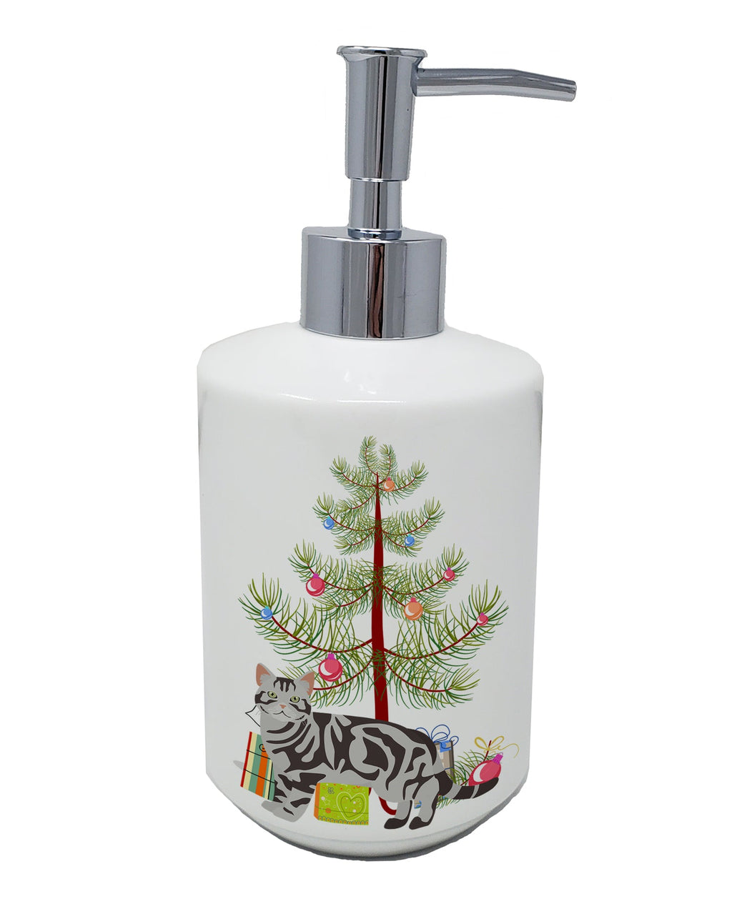 Decorate your space with our Christmas American Shorthair artwork on a Ceramic Soap Dispenser. Revitalize your kitchen or bathroom decor with the Decorative Ceramic Soap Dispenser from Caroline's Treasures. This refillable dispenser marries practicality and style, serving as a vibrant art piece in addition to its primary function. The dispenser's exterior boasts colorful artwork from one of Caroline's Treasures' artists, wrapping around the dispenser to add a touch of personality and color to your space. Measuring approximately 7 1/4 inches high and about 3 1/2 inches in diameter, it is the perfect size for any countertop. The dispenser features a sturdy pump nozzle, which screws easily into the top of the ceramic dispenser. With a simple press, you can conveniently dispense your preferred liquid soap, lotion, aromatherapy essential oil blend, shampoo, body wash, or even massage oils. The Decorative Ceramic Soap Dispenser is more than a functional item - it's a statement piece that adds a unique touch to your bathroom or kitchen decor, transforming everyday rituals into an artful experience.