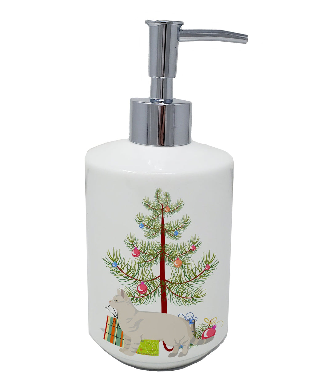 Decorate your space with our Christmas American Shorthair artwork on a Ceramic Soap Dispenser. Revitalize your kitchen or bathroom decor with the Decorative Ceramic Soap Dispenser from Caroline's Treasures. This refillable dispenser marries practicality and style, serving as a vibrant art piece in addition to its primary function. The dispenser's exterior boasts colorful artwork from one of Caroline's Treasures' artists, wrapping around the dispenser to add a touch of personality and color to your space. Measuring approximately 7 1/4 inches high and about 3 1/2 inches in diameter, it is the perfect size for any countertop. The dispenser features a sturdy pump nozzle, which screws easily into the top of the ceramic dispenser. With a simple press, you can conveniently dispense your preferred liquid soap, lotion, aromatherapy essential oil blend, shampoo, body wash, or even massage oils. The Decorative Ceramic Soap Dispenser is more than a functional item - it's a statement piece that adds a unique touch to your bathroom or kitchen decor, transforming everyday rituals into an artful experience.