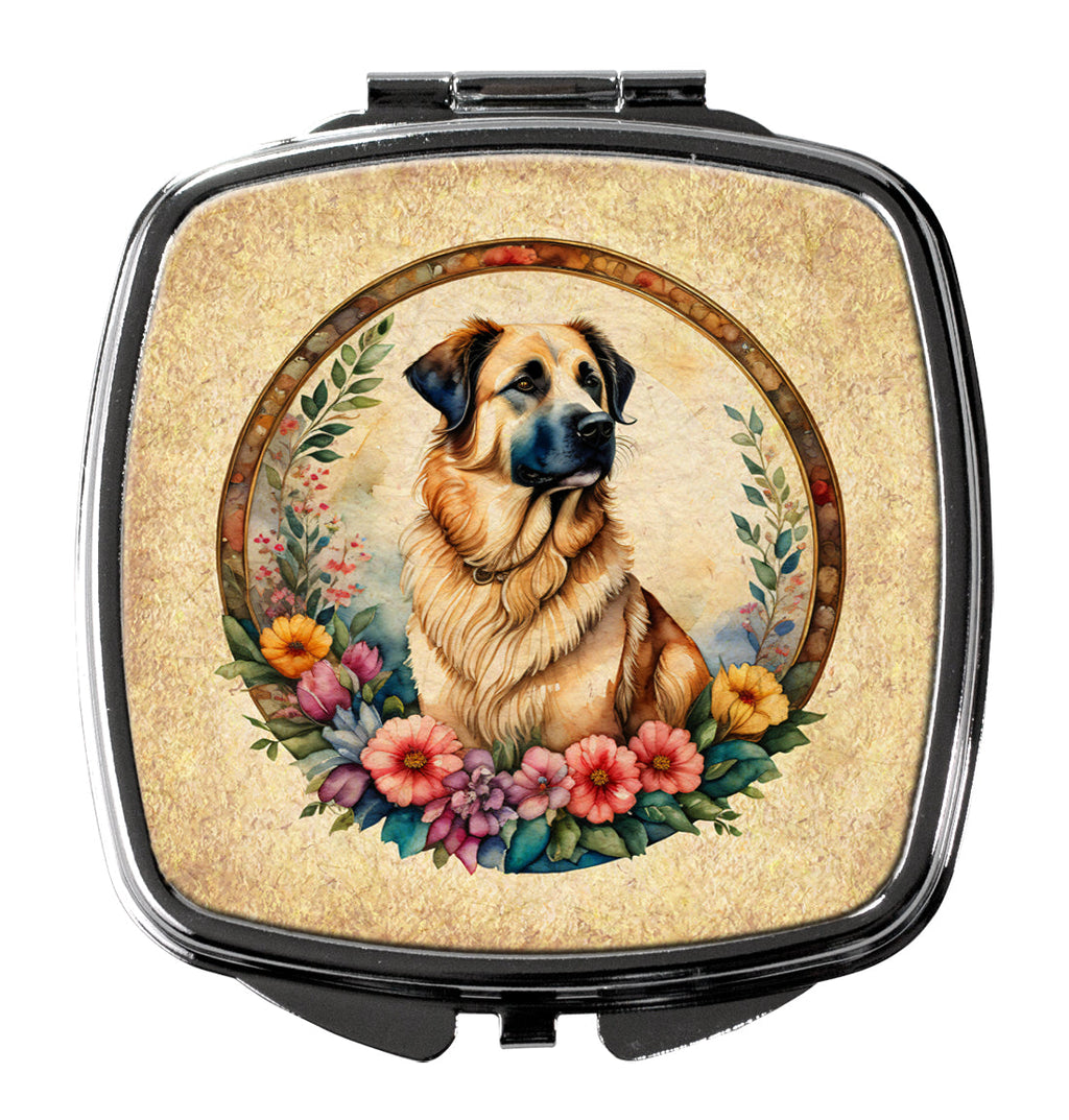 Anatolian Shepherd Dog and Flowers Compact Mirror – Stylish Purse Mirror with Artistic Covers